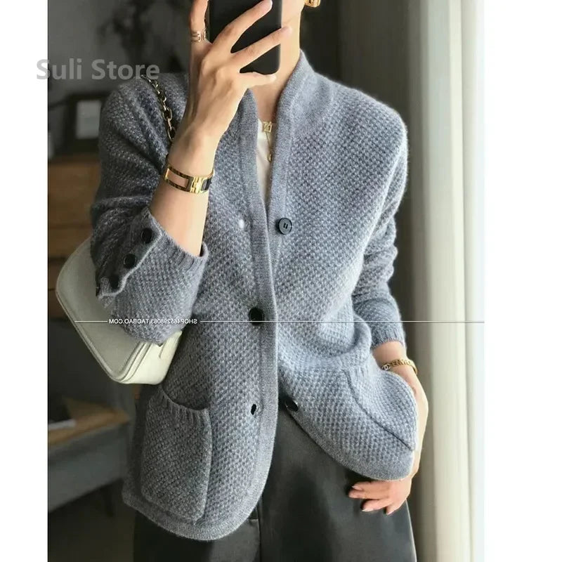 2024 Autumn Winter Women Long Sleeve Knitted Cardigan Single Breasted Solid Color V Neck Loose Sweater Outwear Oversize S-3XL