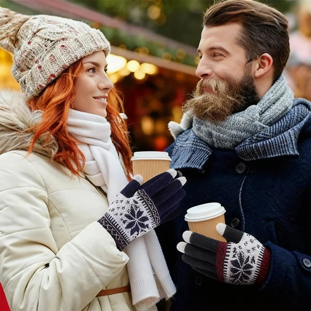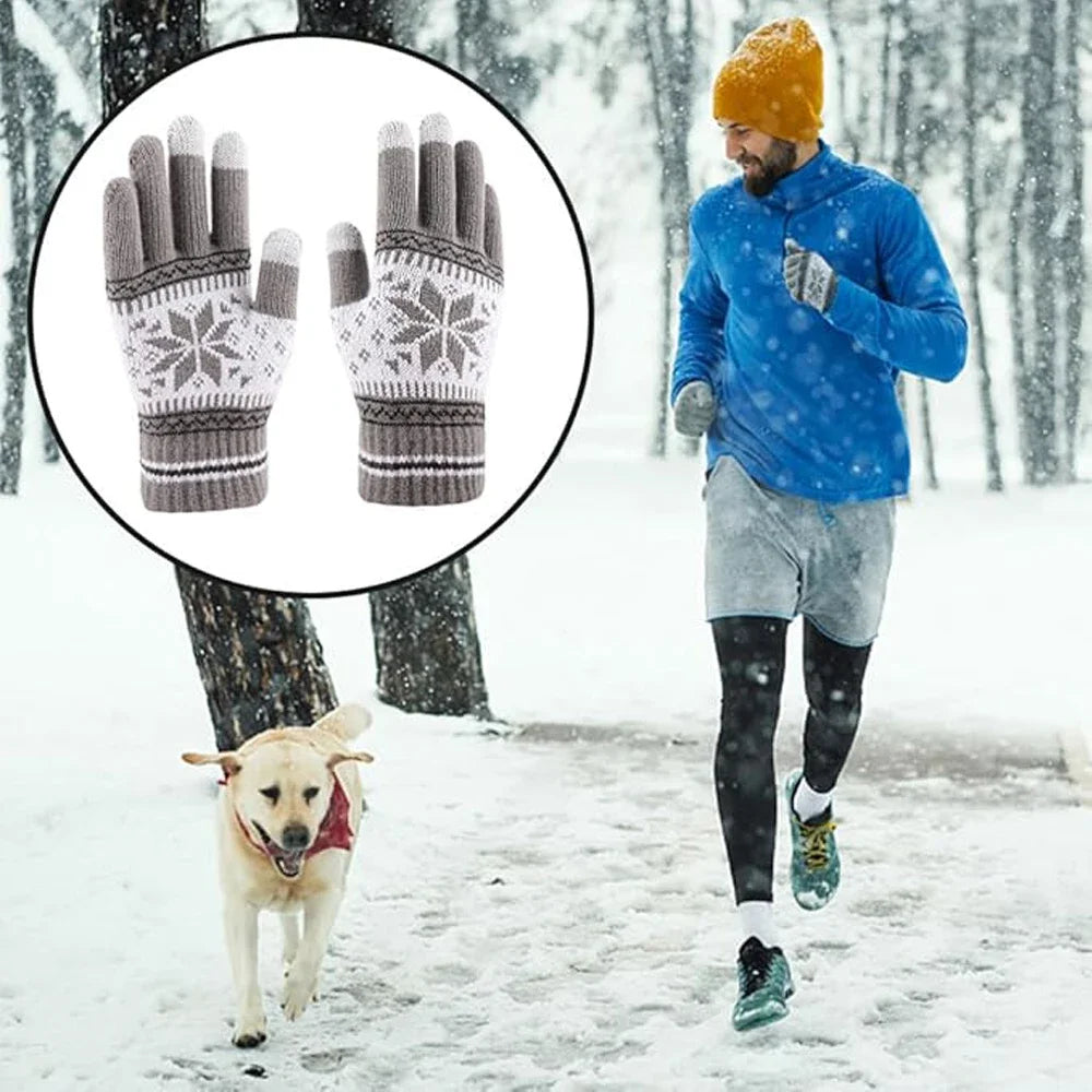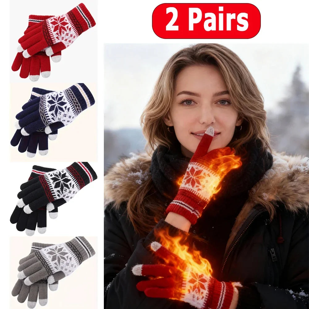 2Pairs Winter Warm Knitted Embroidered Gloves, Handmade Snowflake Embroidery, Touchscreen Warm Gloves, Christmas Gifts
