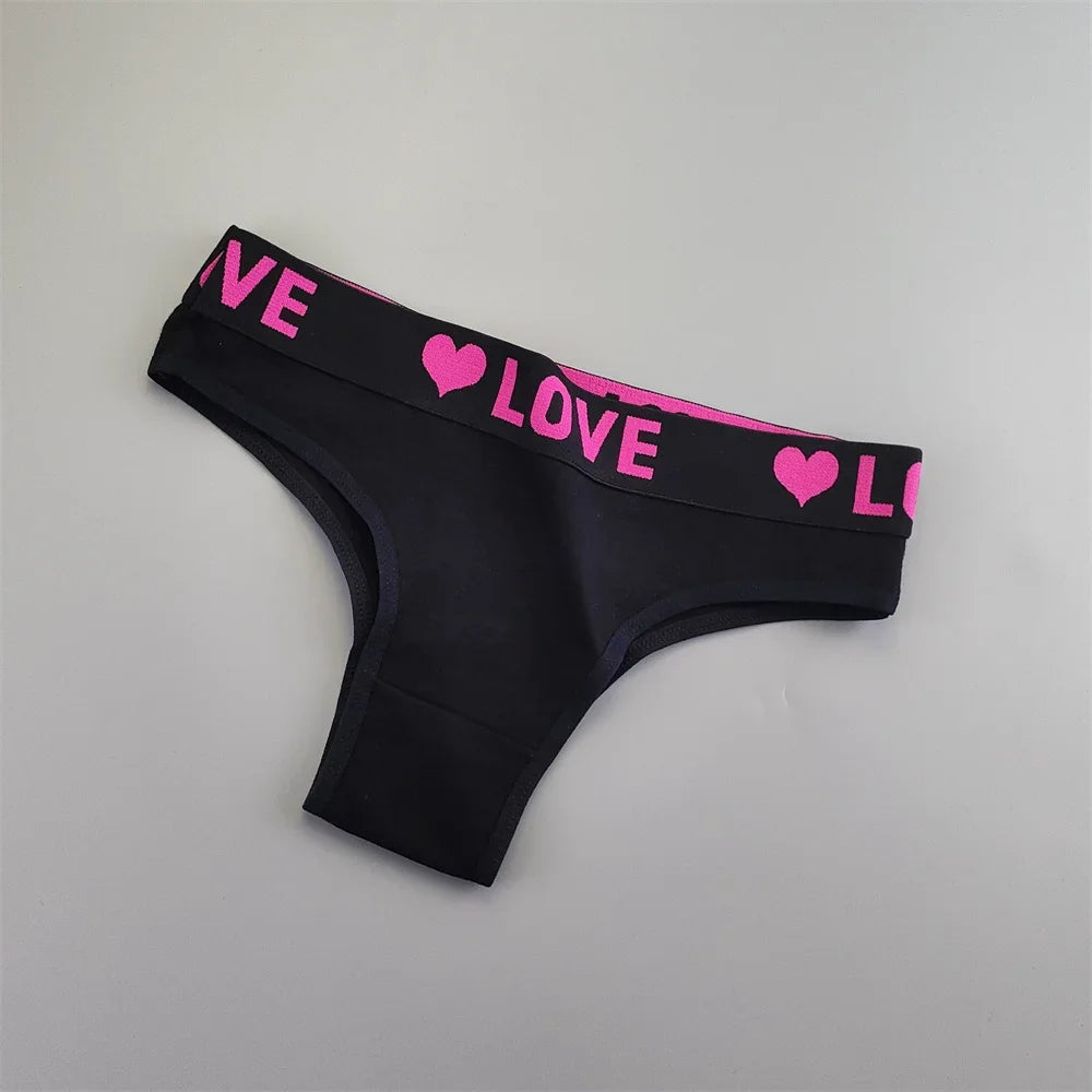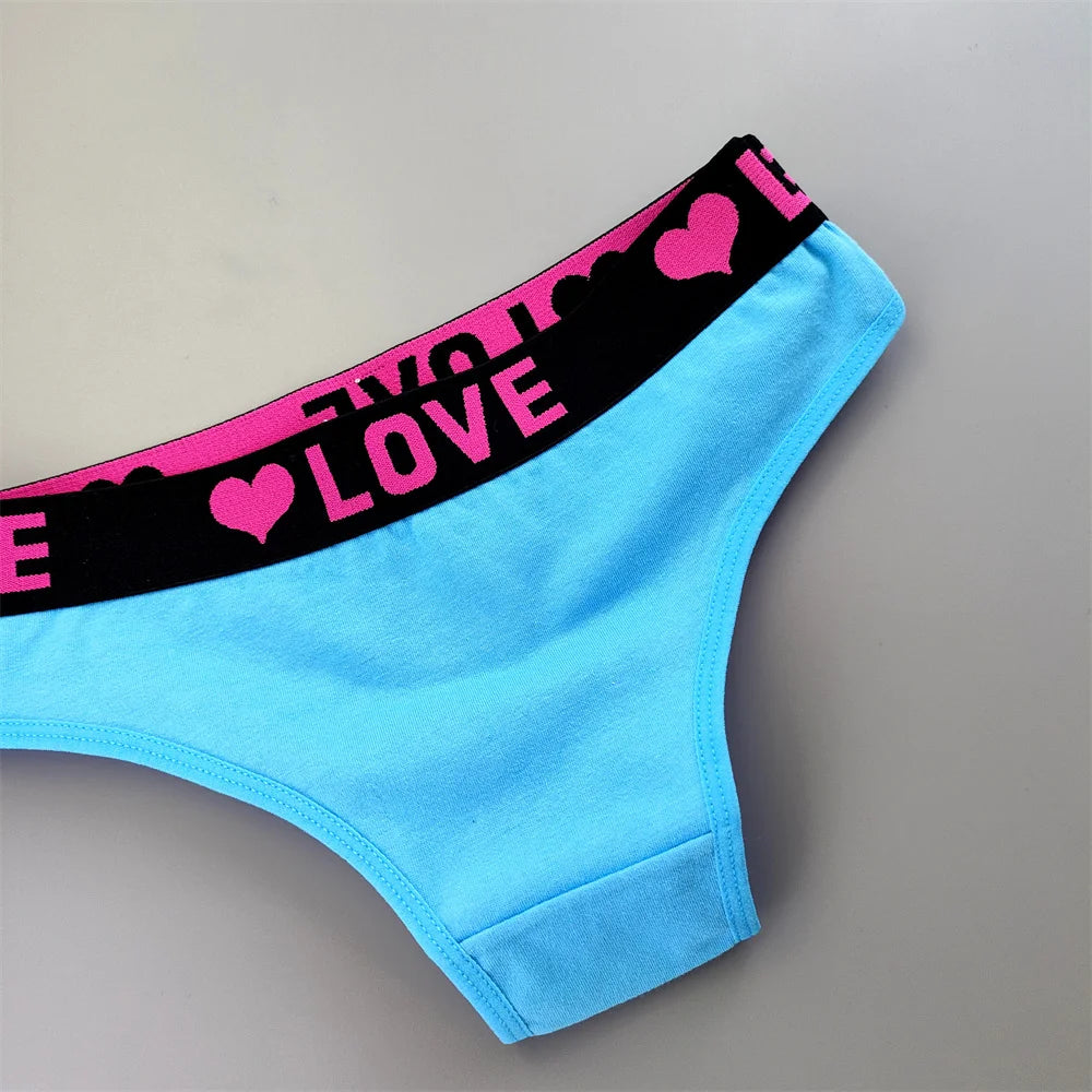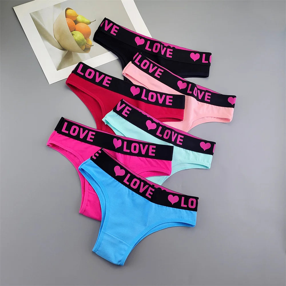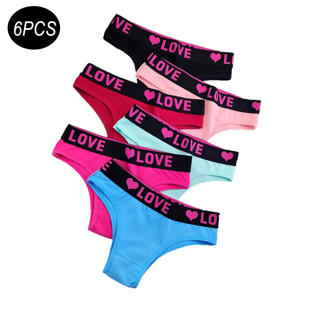 6 Pieces Love Heart Printed Women's Cotton Underwear Wide Belt Half Wrapped Buttocks Ladies Bikini Brief Sweet Lingerie