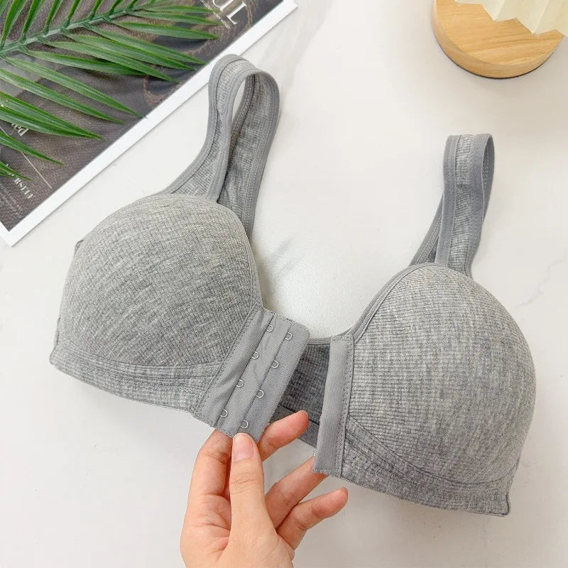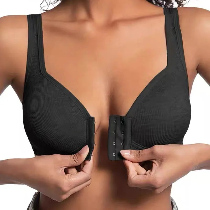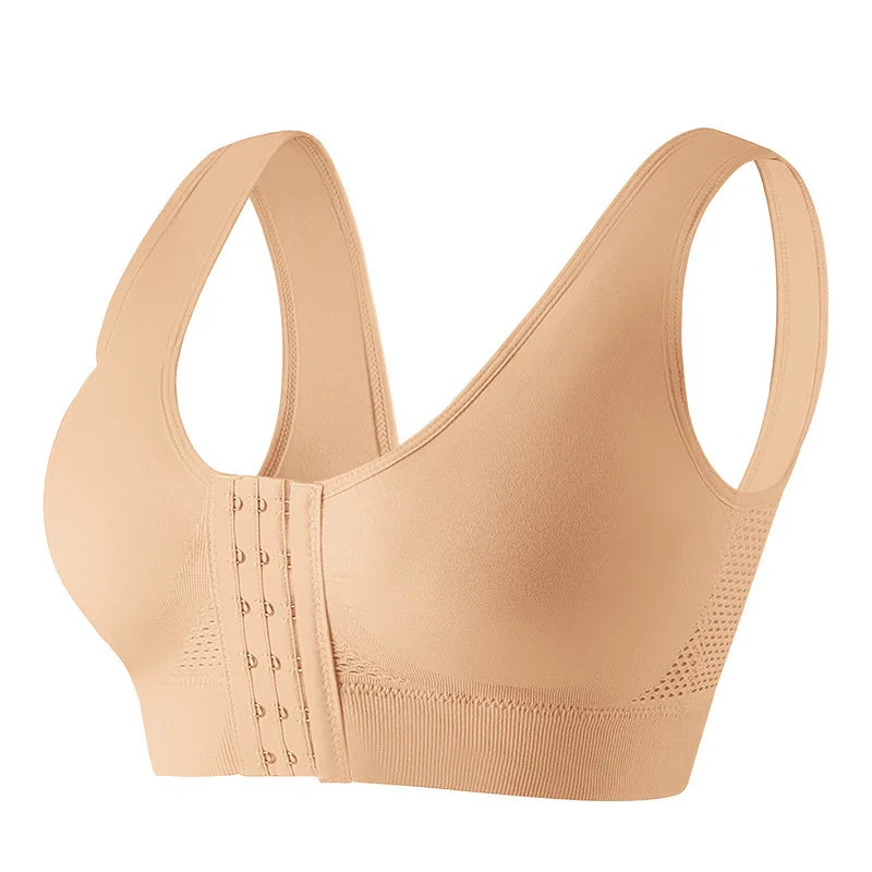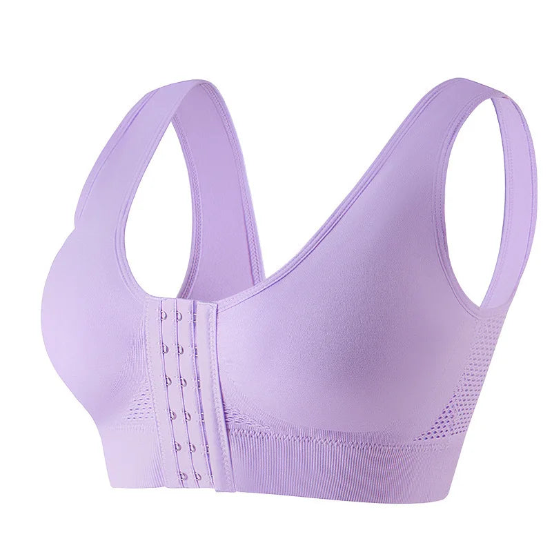 Women Ergonomic Vest-Style Wireless Bra Front Closure Breathable Moisture-Wicking Bra Anti-Slip Shoulder Straps Sports Underwear