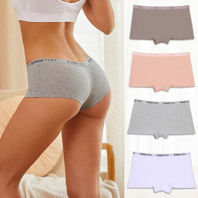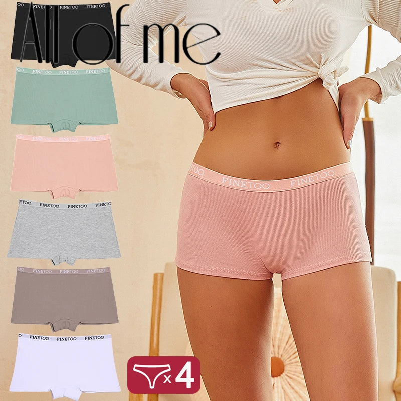 4pcs Cotton Ribbed Striped Boxers Underwear for Women Sexy Elastic Belt Boyshorts Panties Female Low Waist Breathable Lingerie