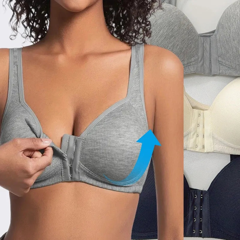 Guudia Front Hook Post Surgery Bra Front Closure Surgical Recovery Everyday Bra Wireless Mastectomy Bra with Adjustable Straps