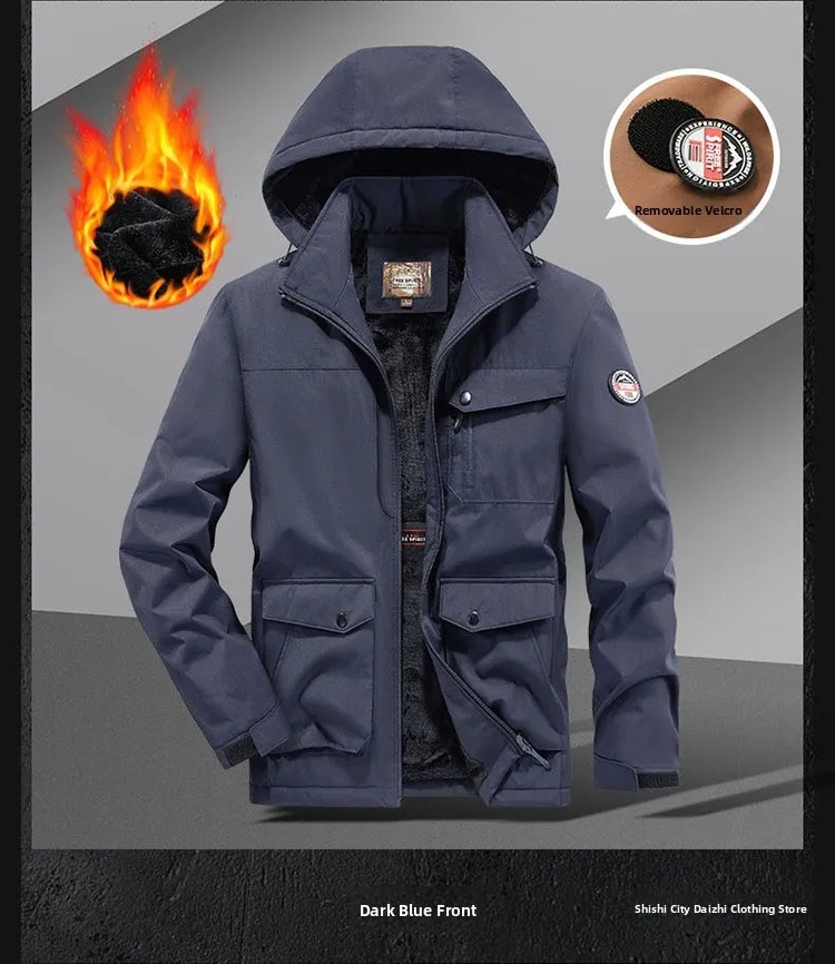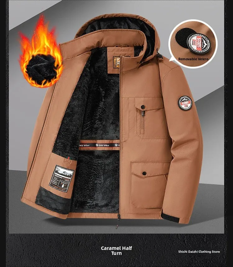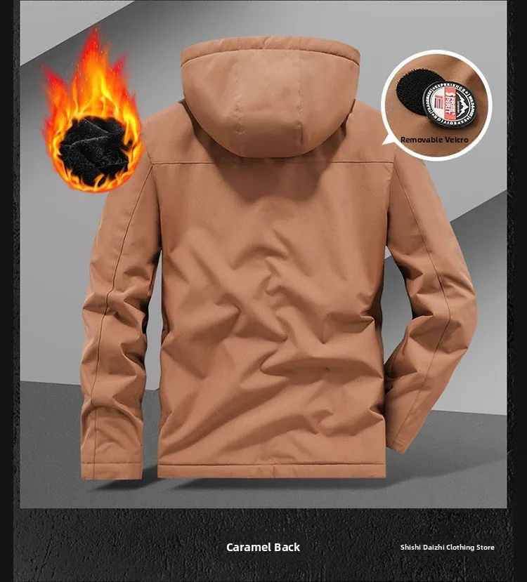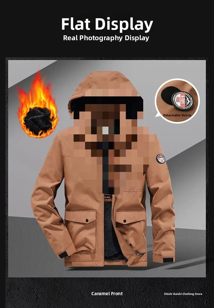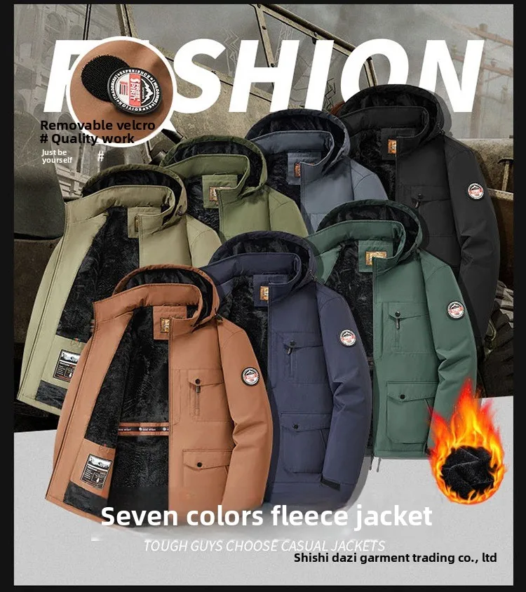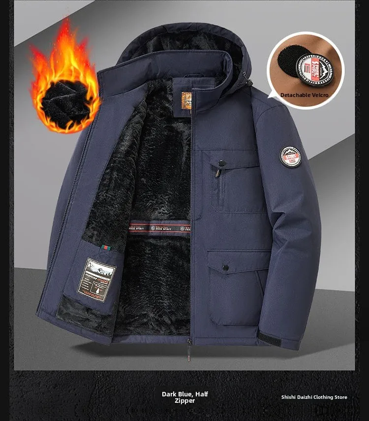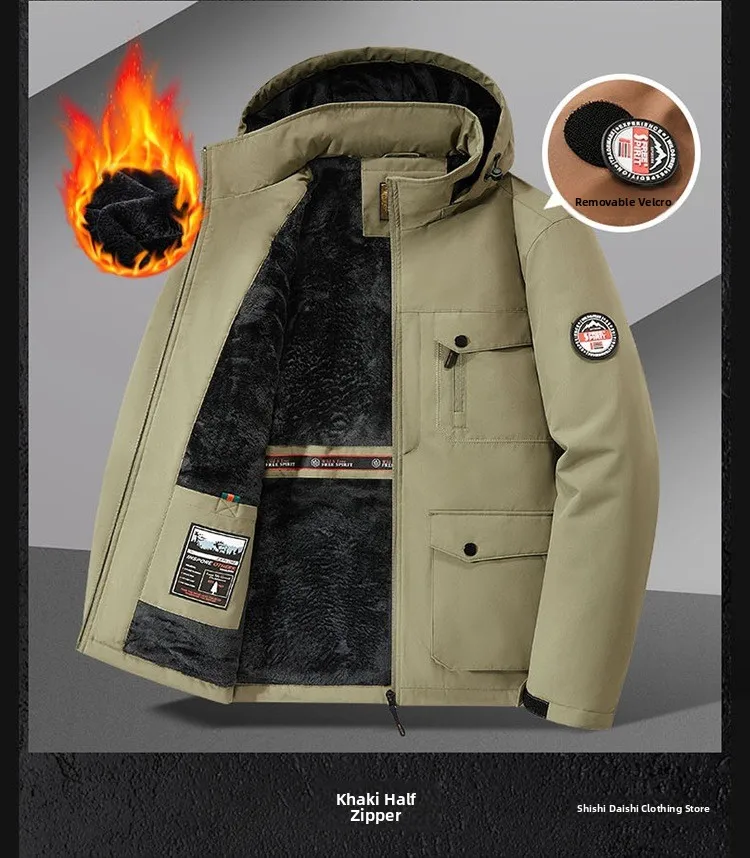 Thickened Fleece Winter Jacket for Men Warm Breathable Urban Style Zipper Closure Long Sleeve Casual Outerwear