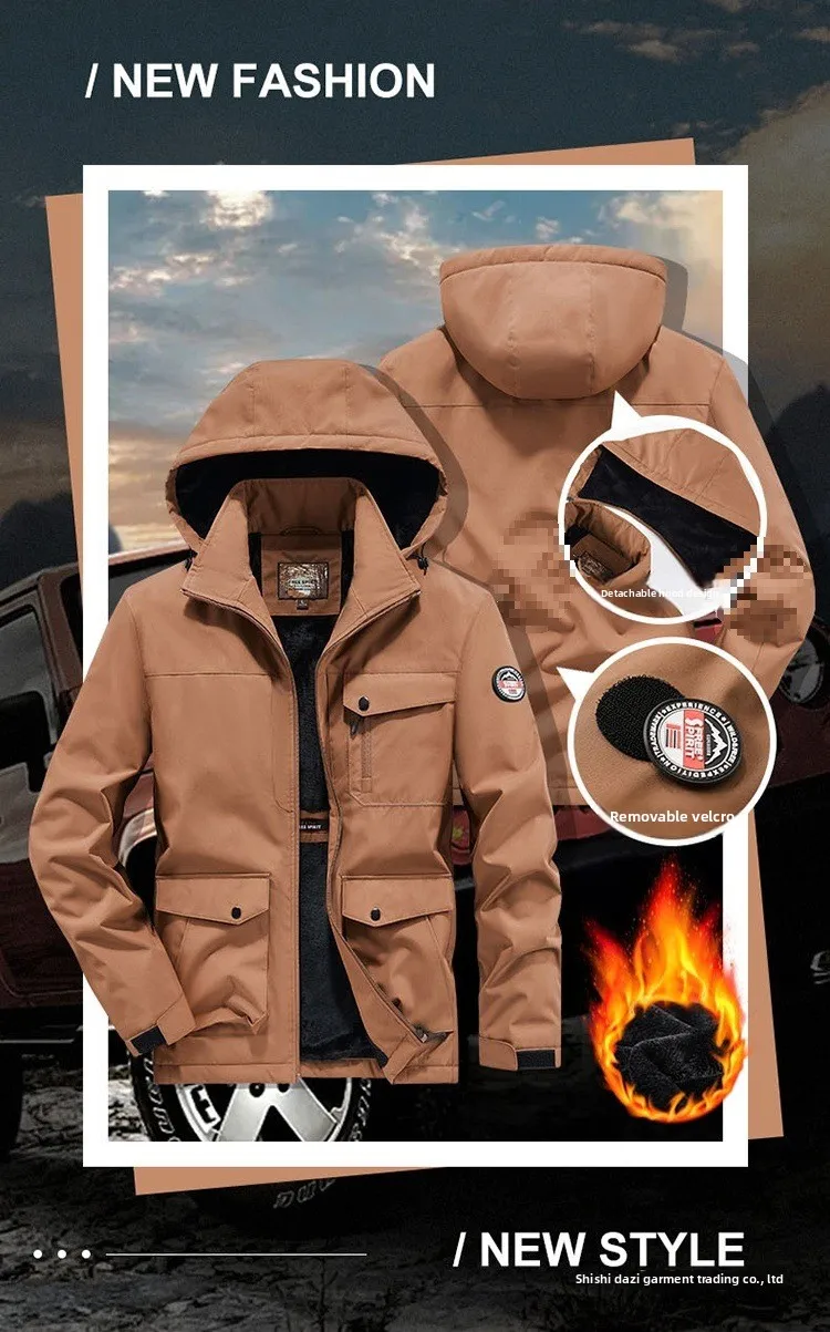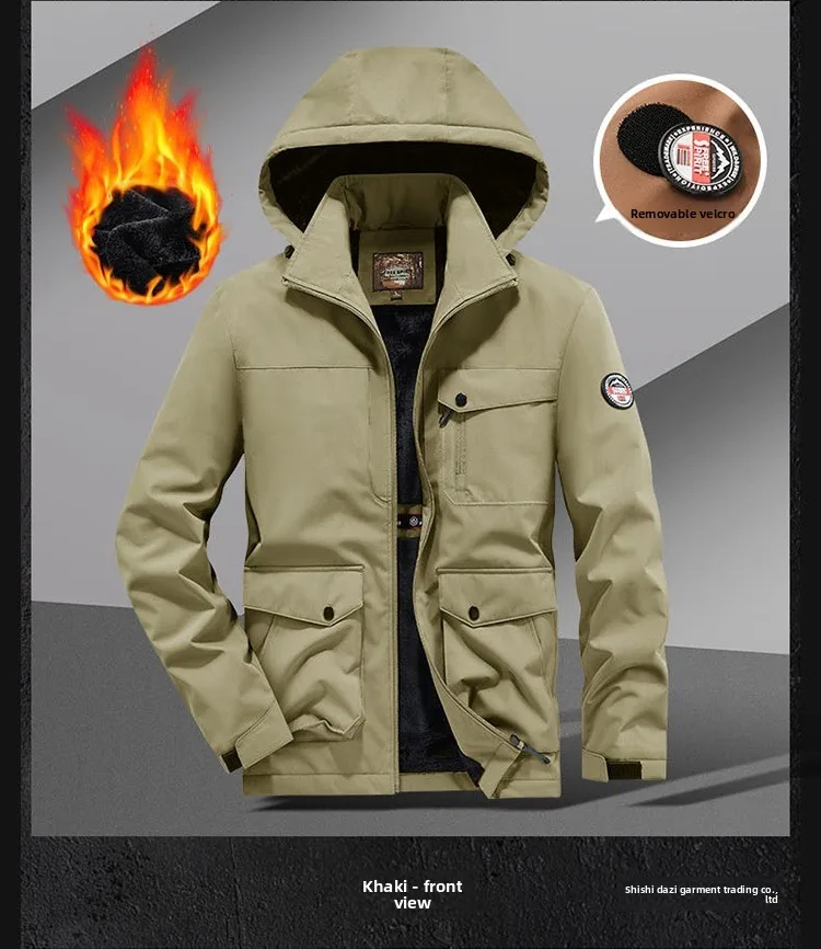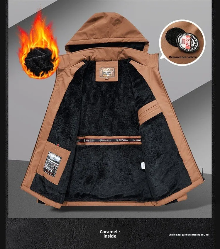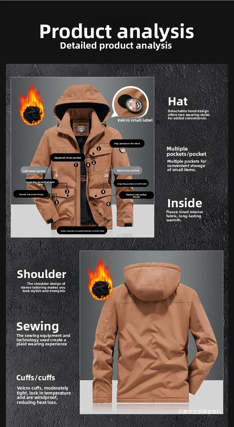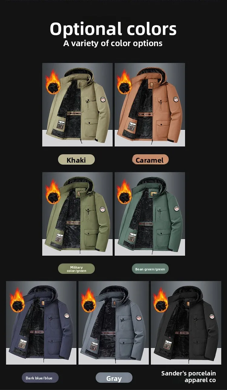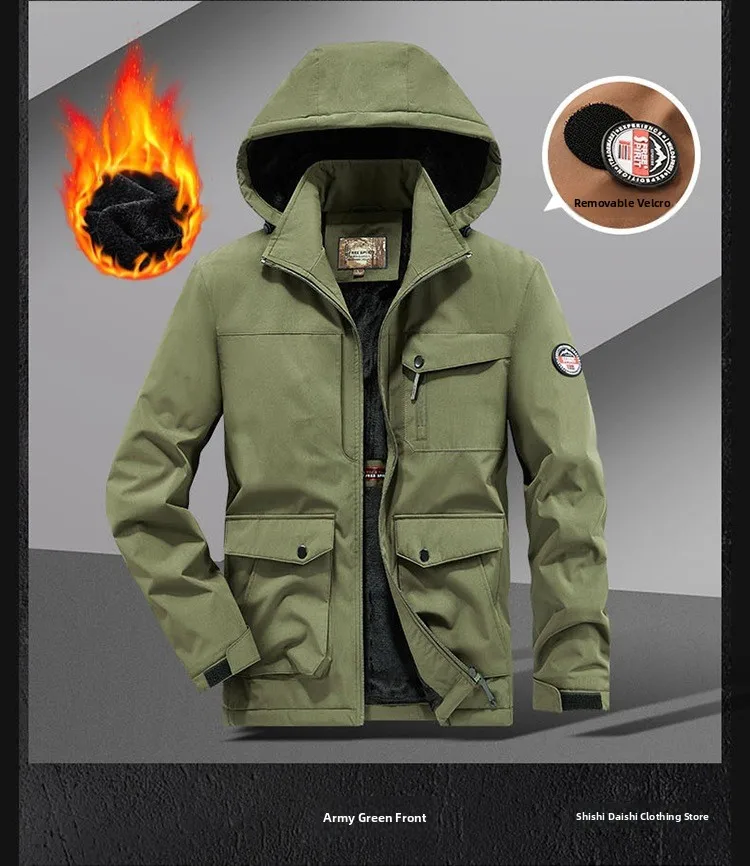 Thickened Fleece Winter Jacket for Men Warm Breathable Urban Style Zipper Closure Long Sleeve Casual Outerwear