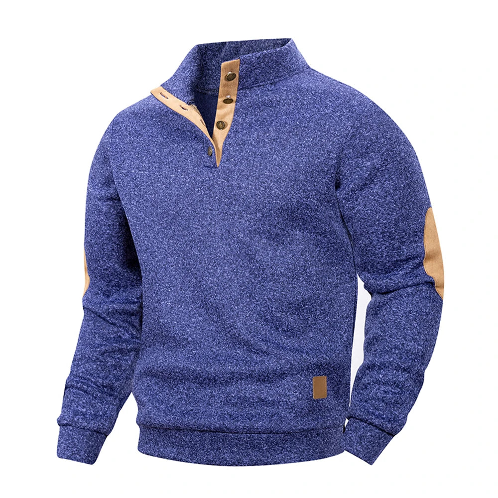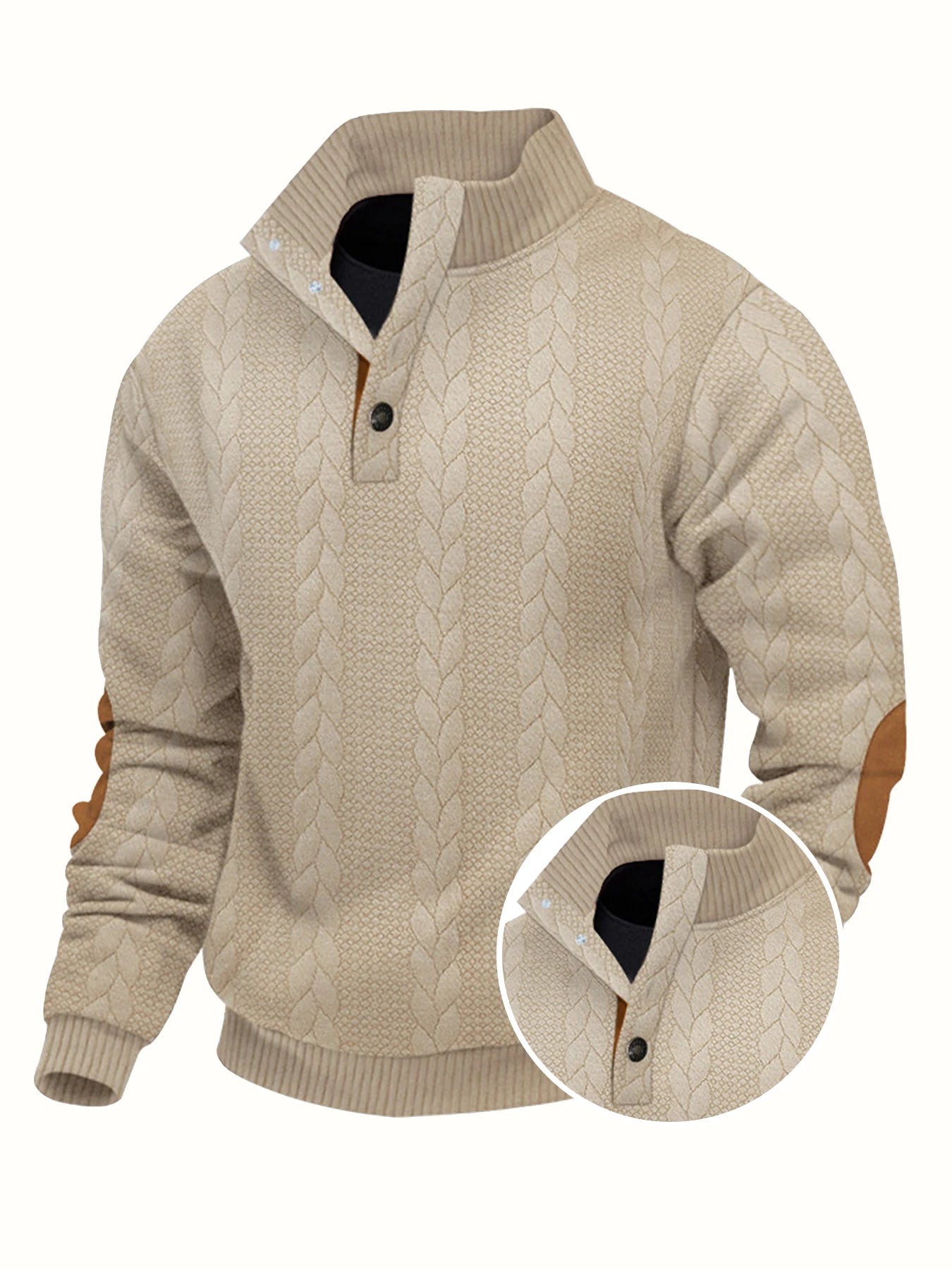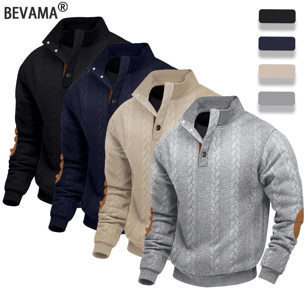 Men's Casual Knitted Jacquard Sweaters Autumn Button Stand up Long-sleeved Pullover Half Turtleneck Sports Fleece Sweatershirt