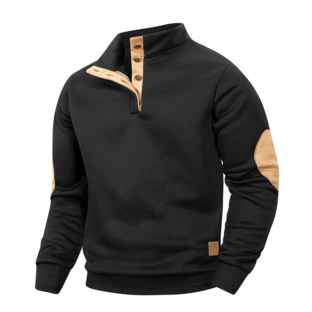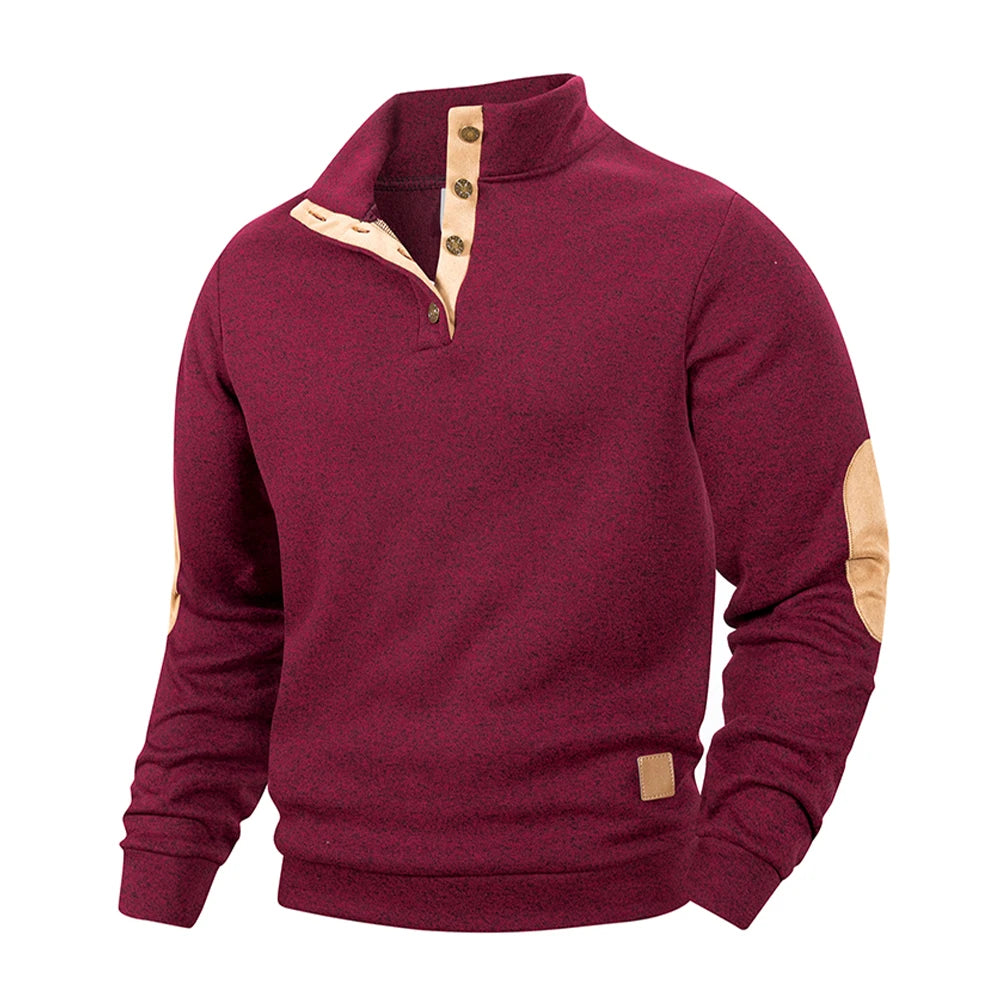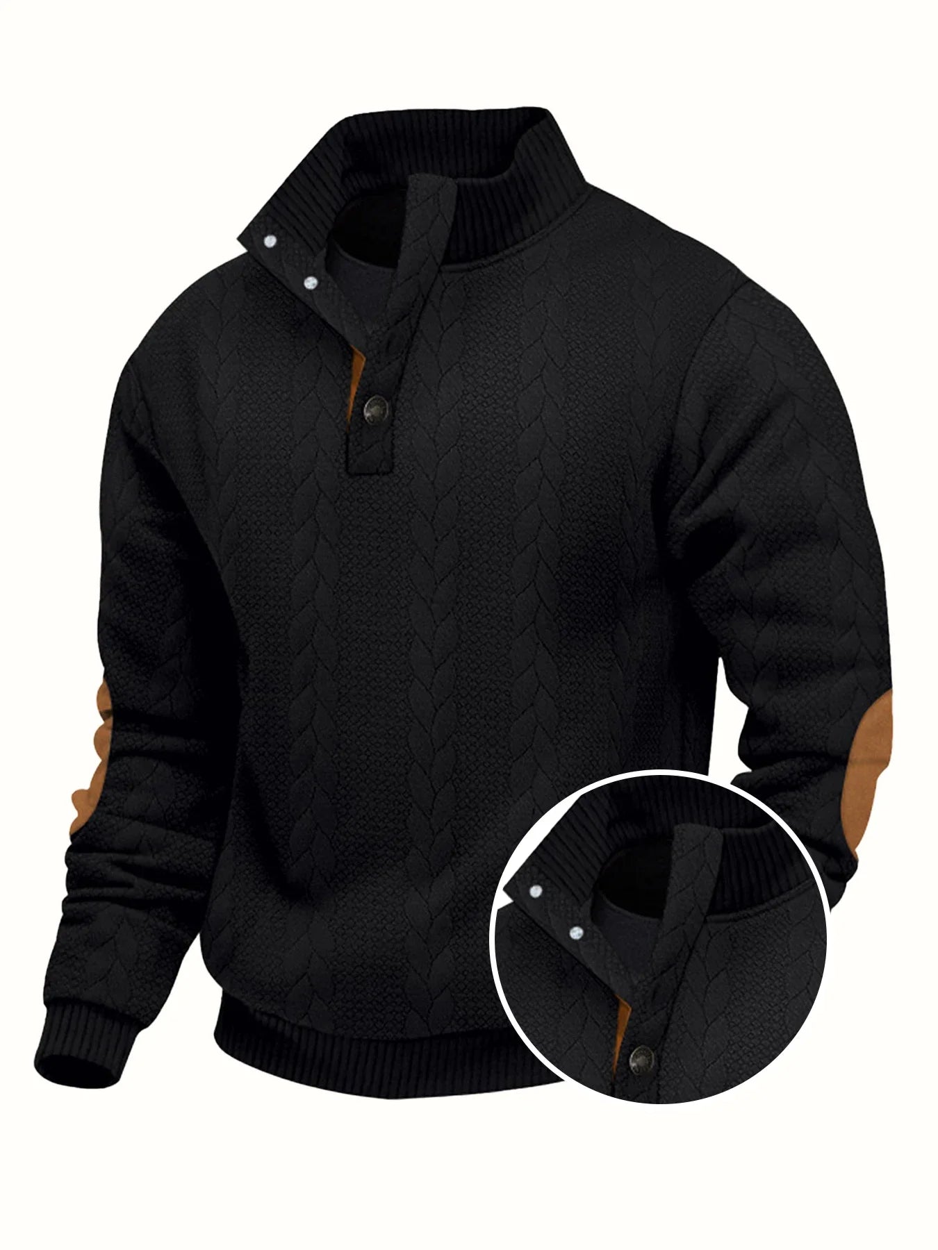 Men's Casual Knitted Jacquard Sweaters Autumn Button Stand up Long-sleeved Pullover Half Turtleneck Sports Fleece Sweatershirt