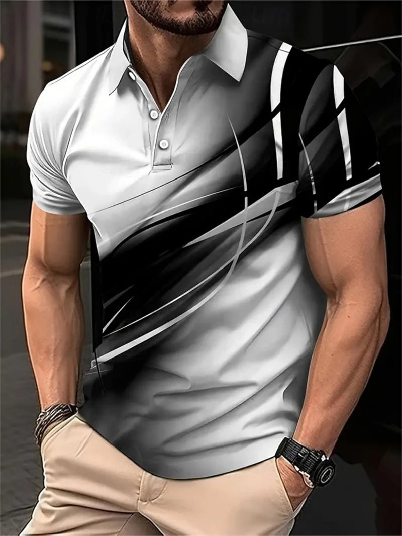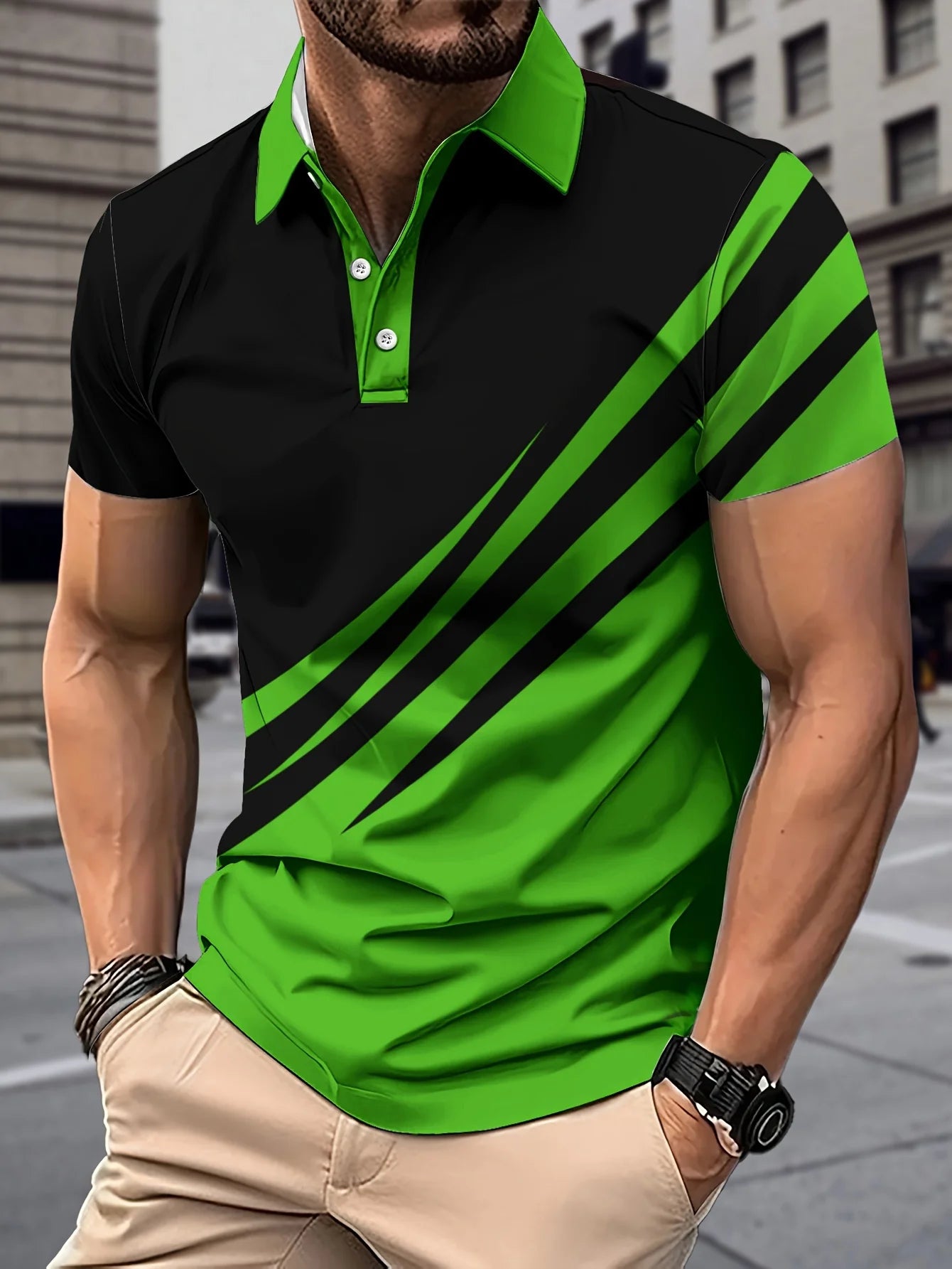 Fashion Irregular Line Pattern Polo Shirts For Men Simple Trend Summer 3D Printed Short Sleeve Polo Shirt Casual Oversized Tops