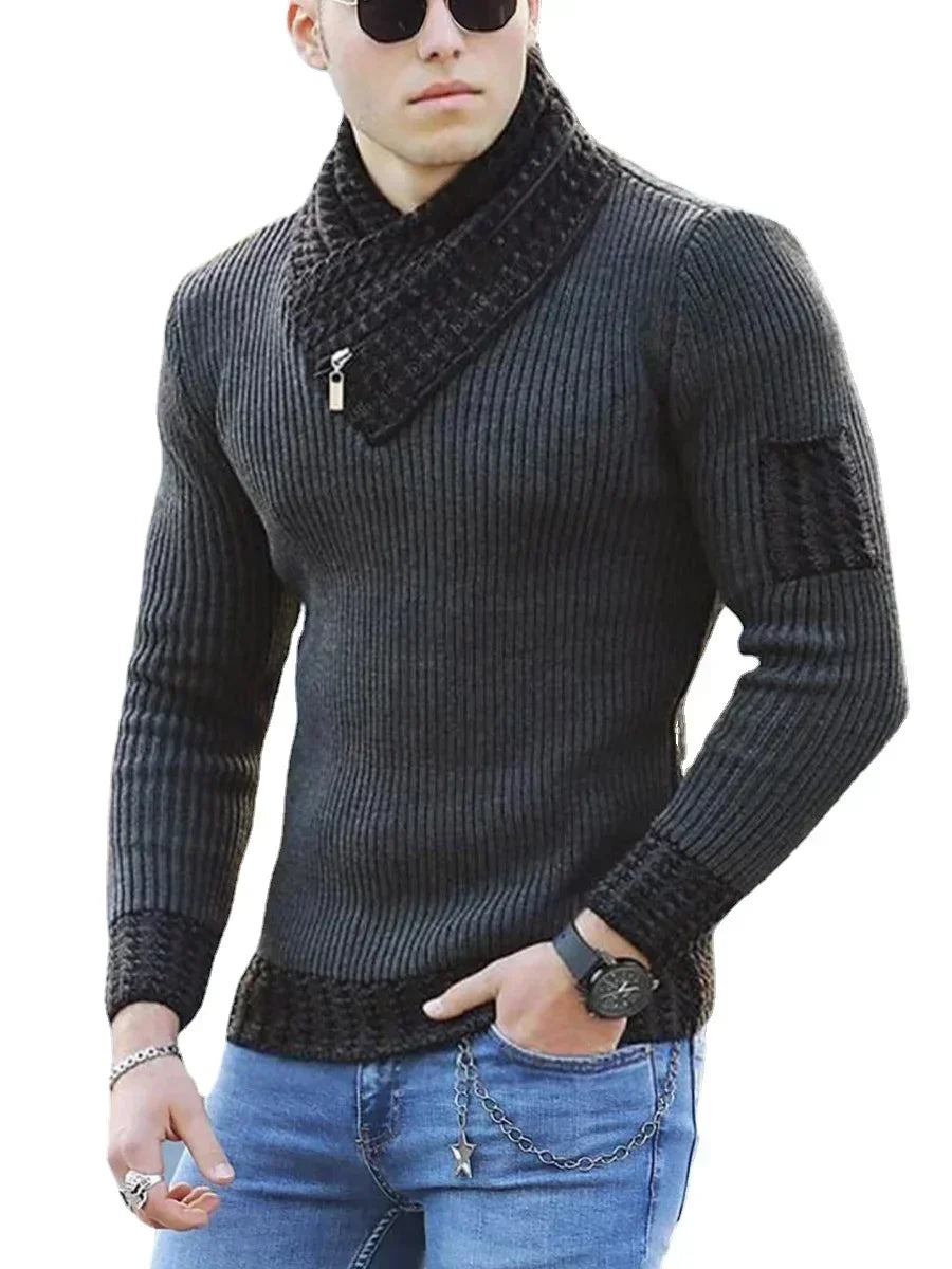 2025 Autumn/Winter New European and American Men's Jacquard Casual High Collar Sweater Fashion Outerwear