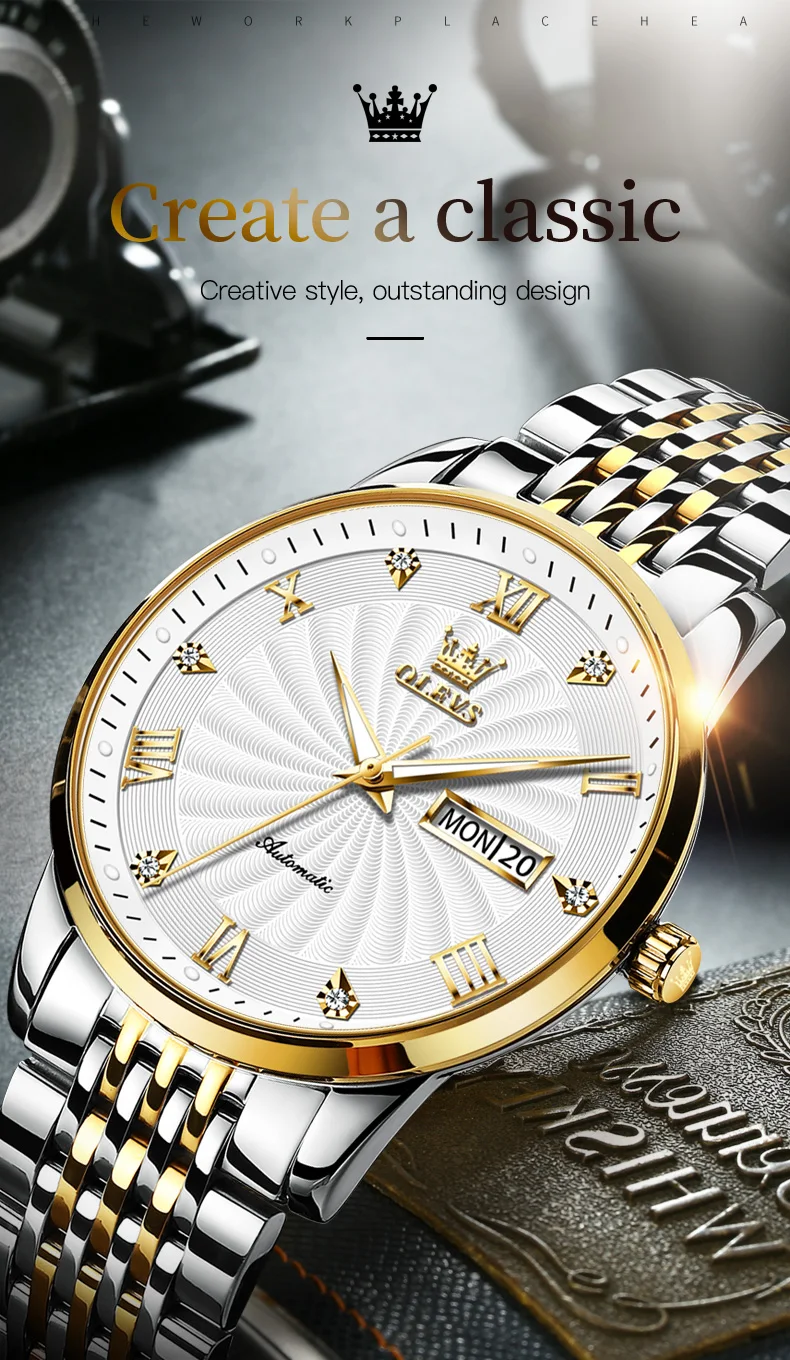 OLEVS Top Brand Luxury Automatic Watch for Men Mechanical Waterproof Stainless Steel Fashion Sports Wristwatch Orologio da uomo