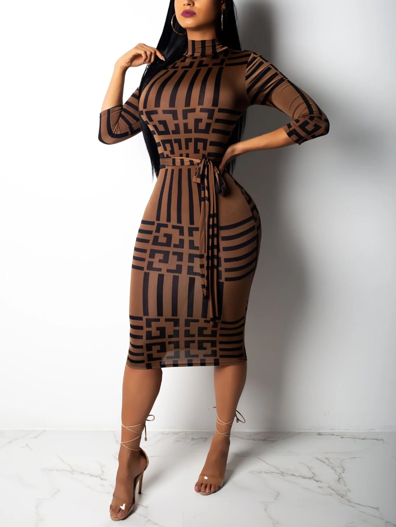 Fashion Women Spring Fall Elegant Dress Long Sleeve Sexy Mini Bandage Dresses Letter Print Midi Dress