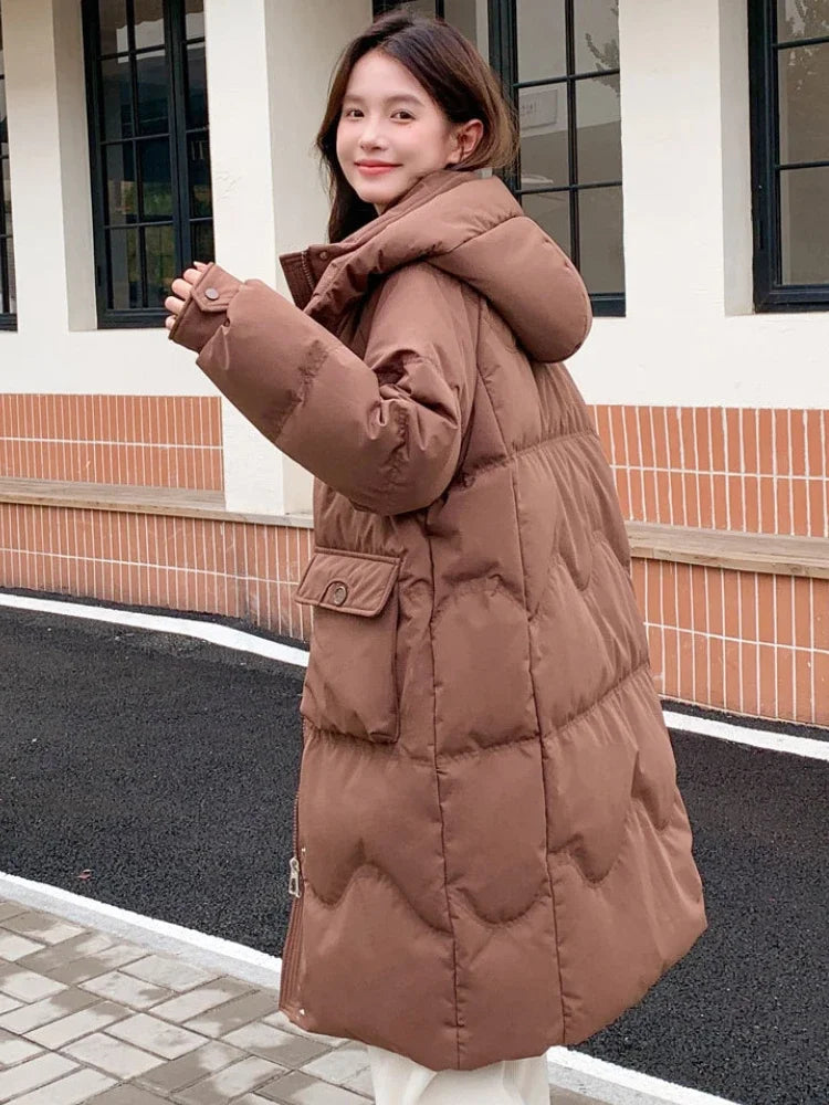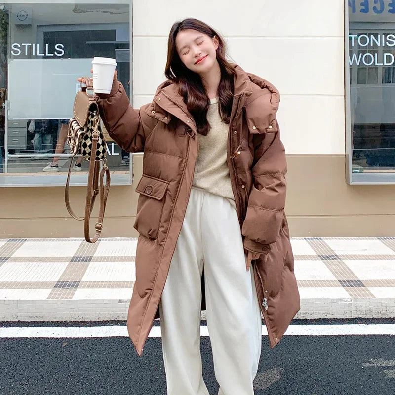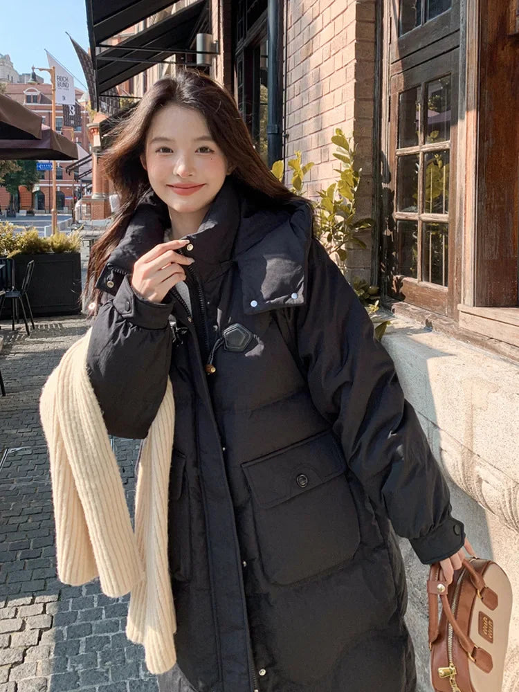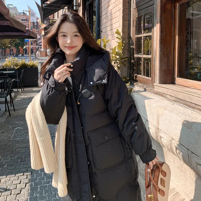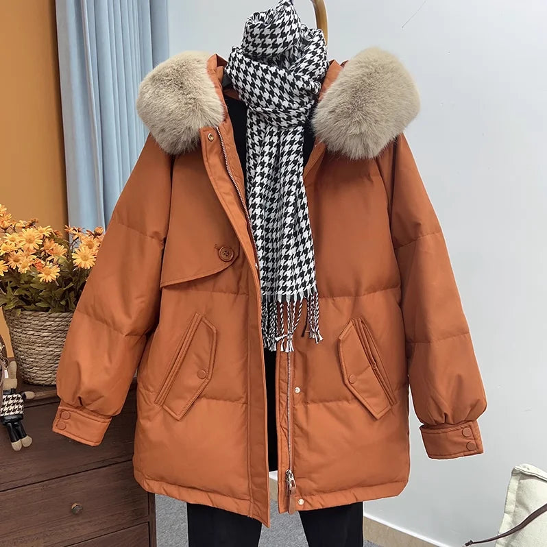 2025 Winter New Women's Down Jacket Loose Hooded Commuter Big Wool Collar Jacket