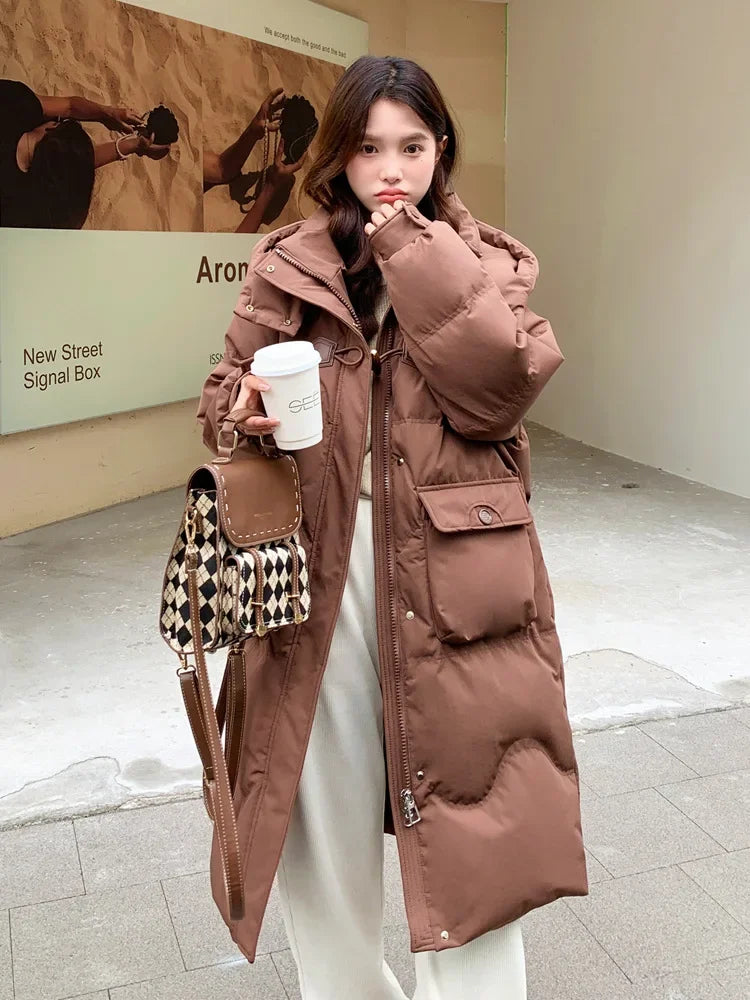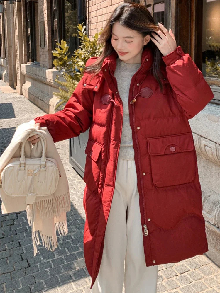 Vintage Red Thickened Down Jacket Winter High Quality Long Bread Clothes Loose Big Quilt Plus Size White Duck Puffer Coat Women