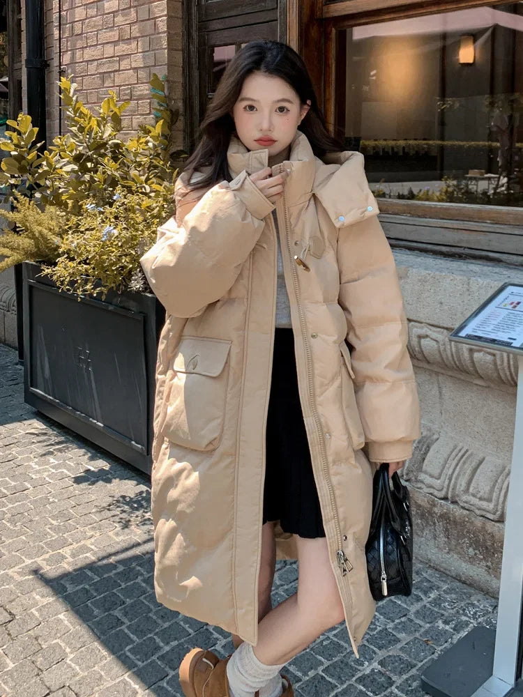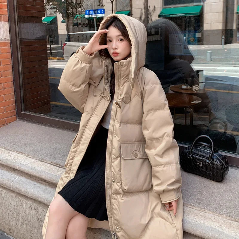 Thickened Oversize Parker Down Jacket Women 2023 Winter New Printed Letter Hooded Slim-Fit Fashion Casual White Duck Puffer Coat