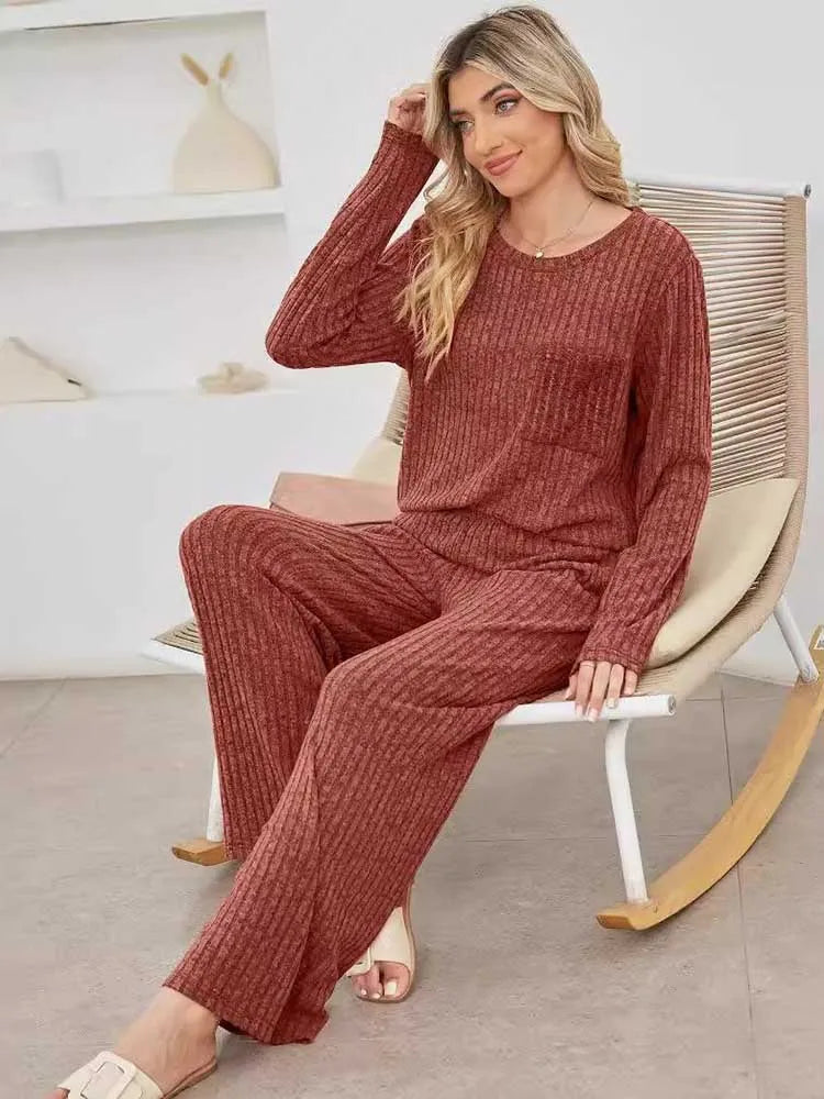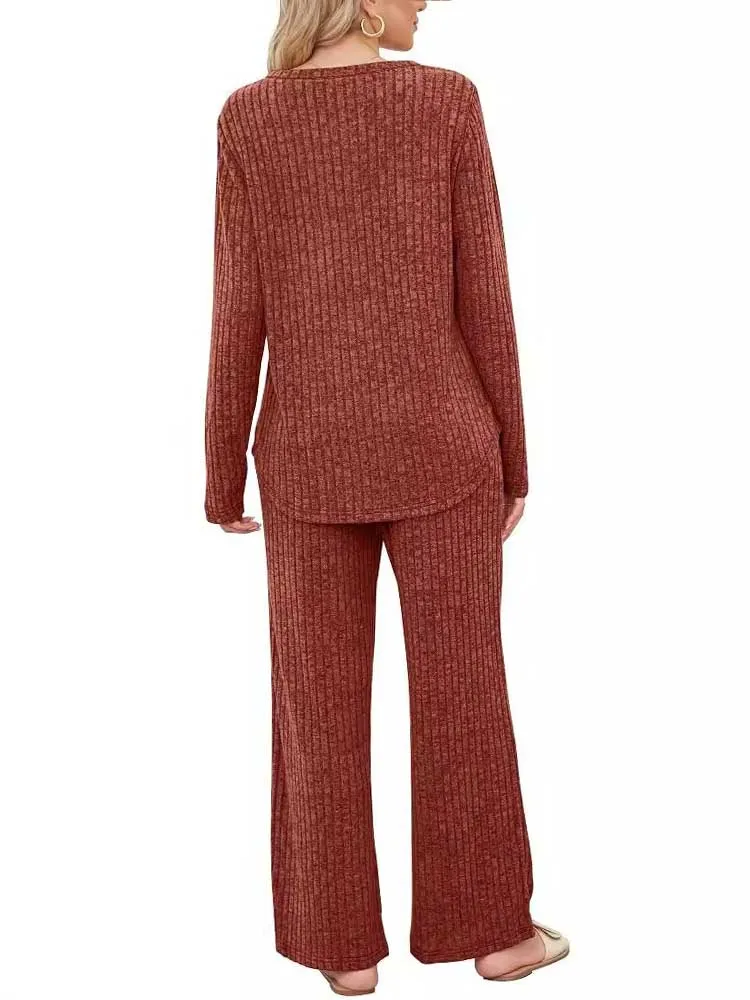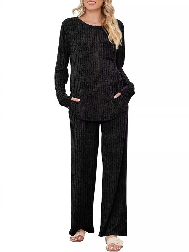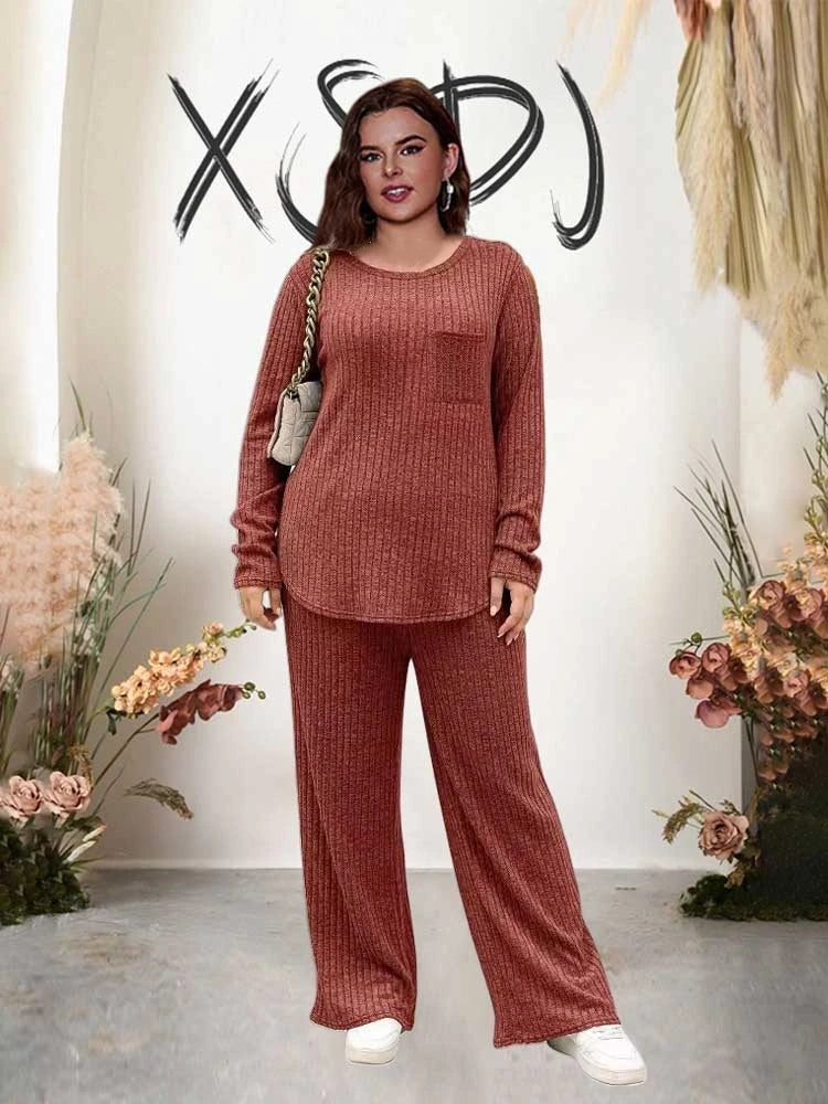 2 Piece Sets Woman Outfit Long Sleeve Ribbed Top and Trouser Casual Knitted Sets Clothing Female Plus Size New in Matching Sets