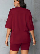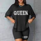Plus size fashionable all-match shorts short-sleeved suit queen letter print simple and comfortable two-piece suit 2024 New