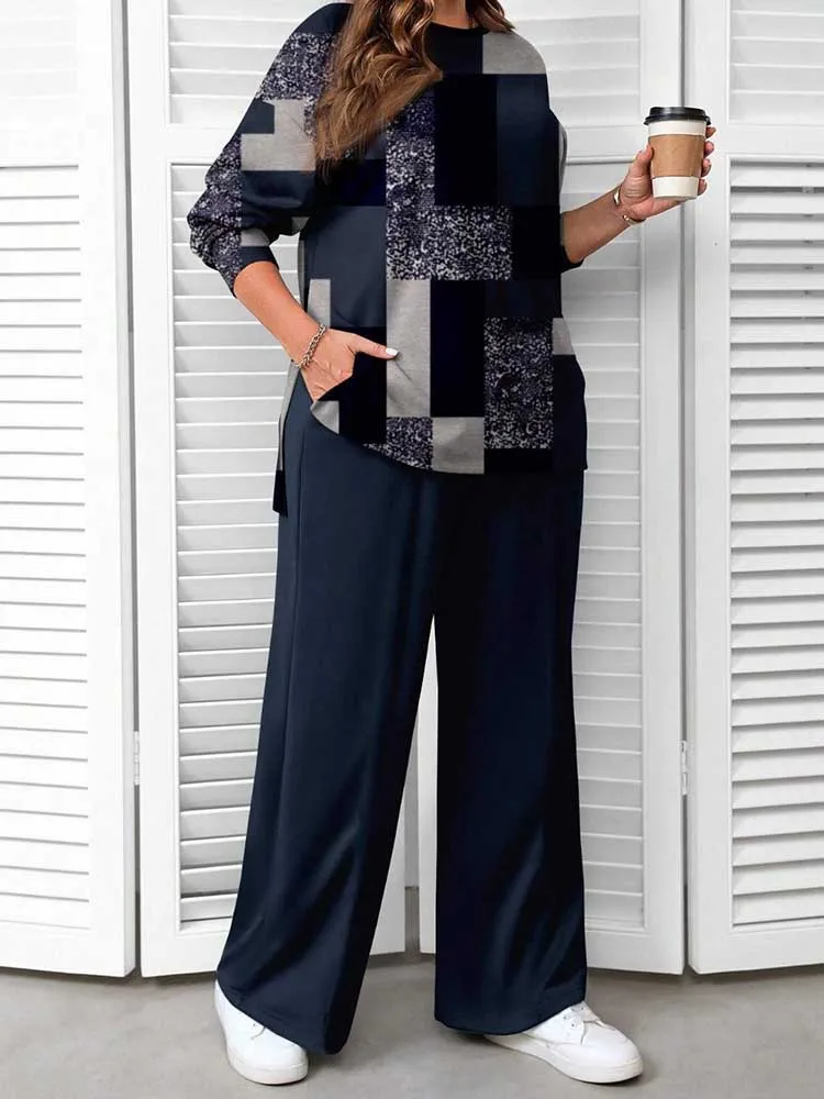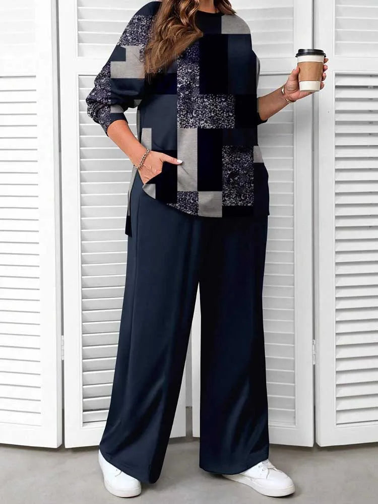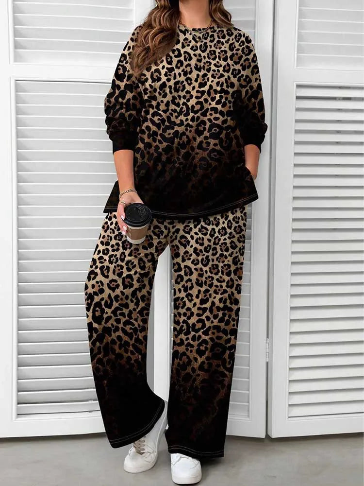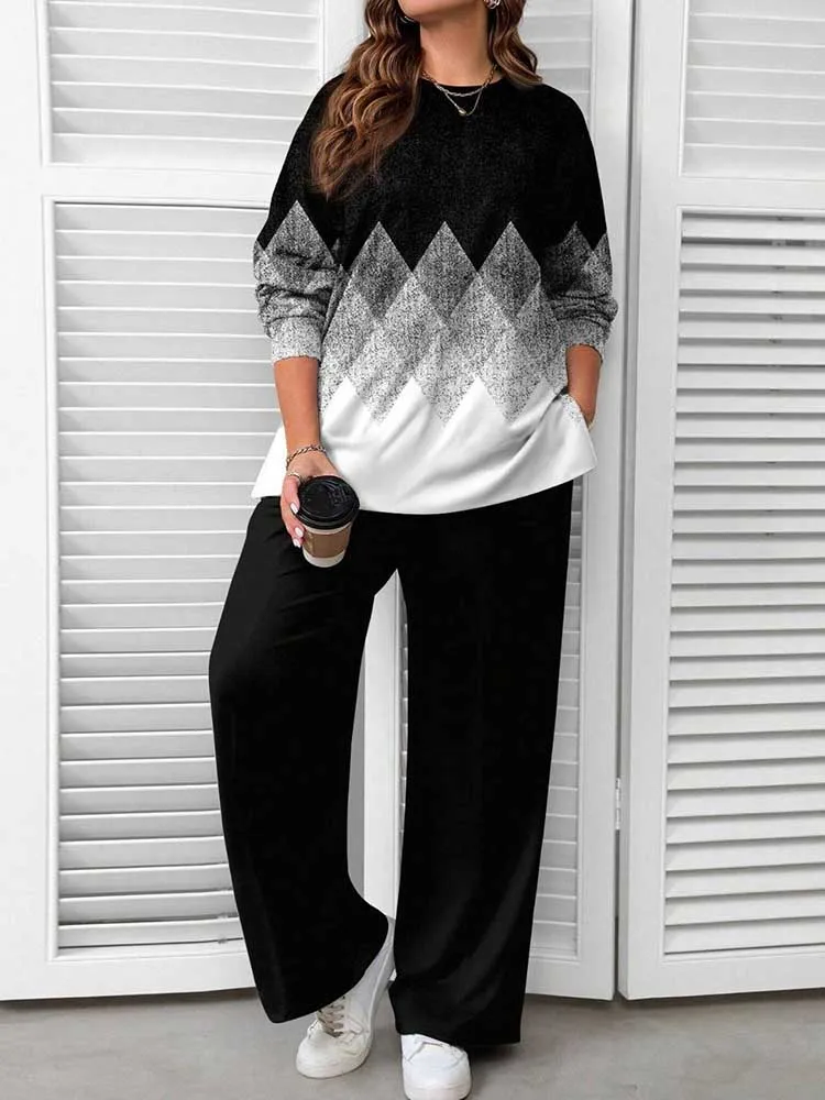 Plus Size Woman Clothing Two Piece Set Outwear Casual and Elegant Ladies Set Pullover Top and Pant Tracksuit Bottoms Outfits