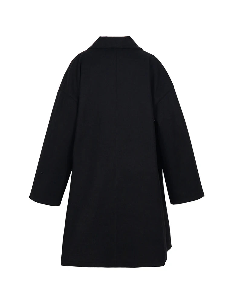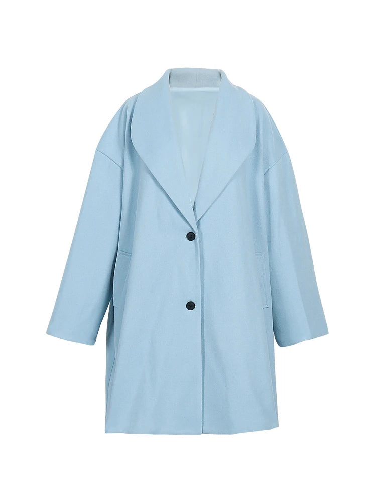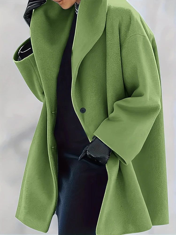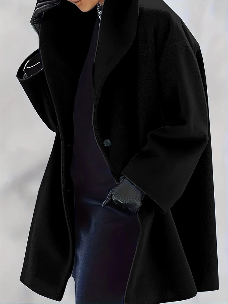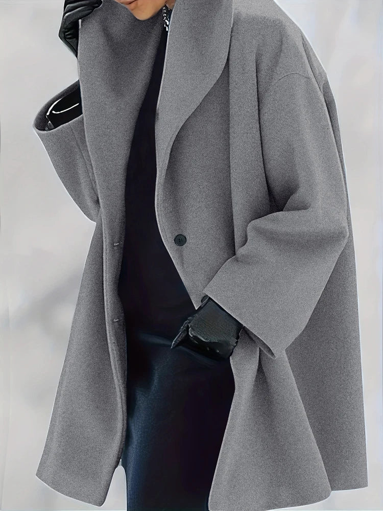 Plus Size Women's Solid Color Long-Sleeve Collared Single-Breasted Jacket with Pockets Loose-Fit V-Neck Minimalist Trench Coat