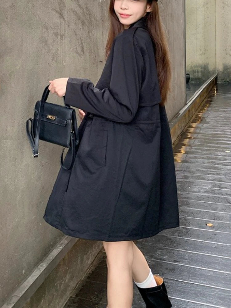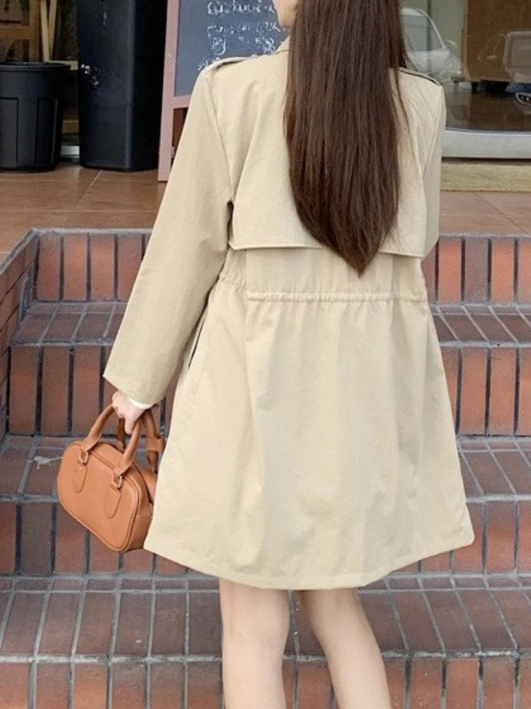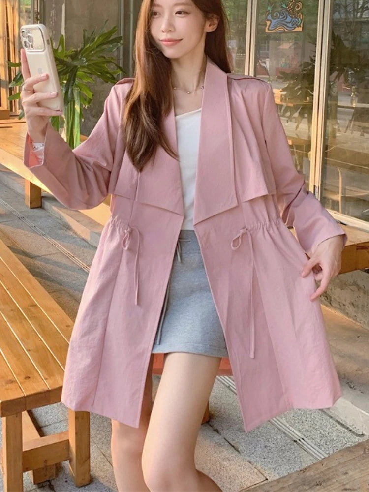 Plus Size Women's Trench Coat 2025 Spring Autumn Elegant Korean Version Drawstring Casual Windbreaker Jacket Versatile Coat