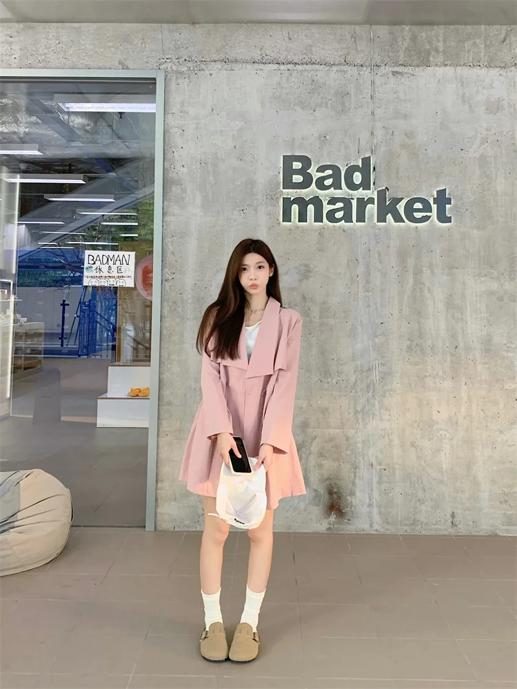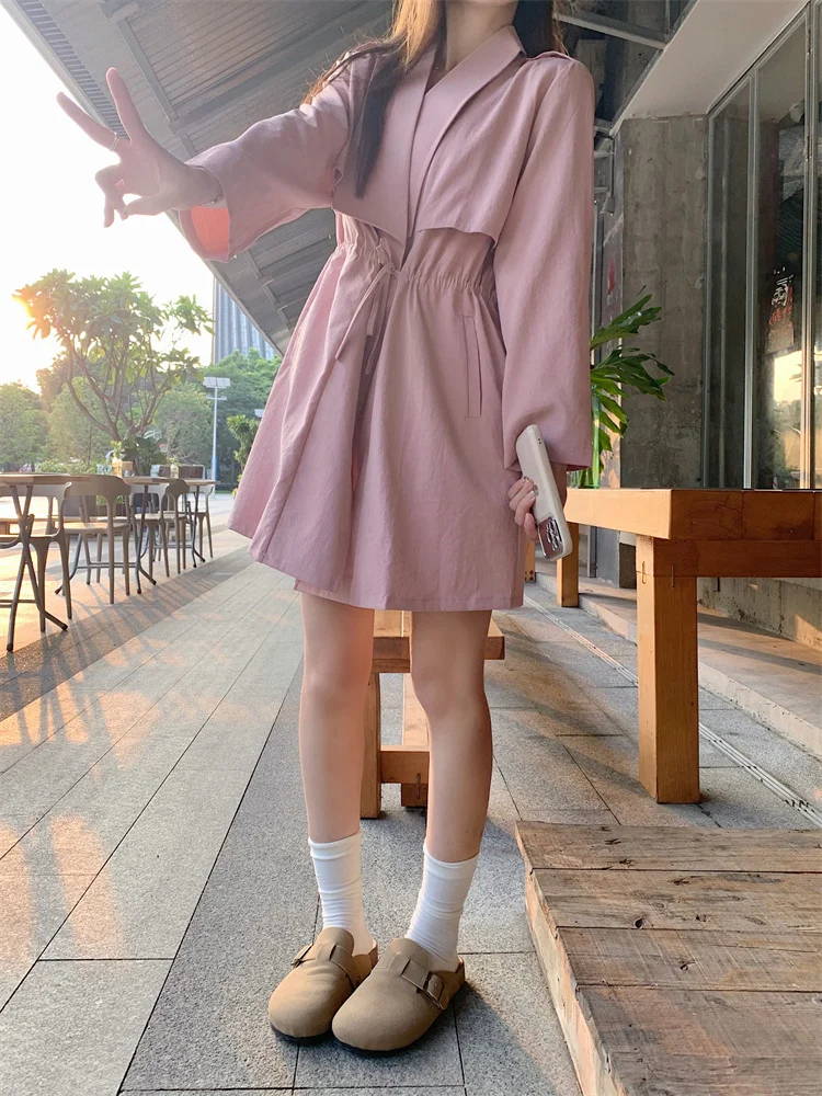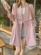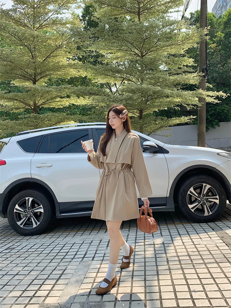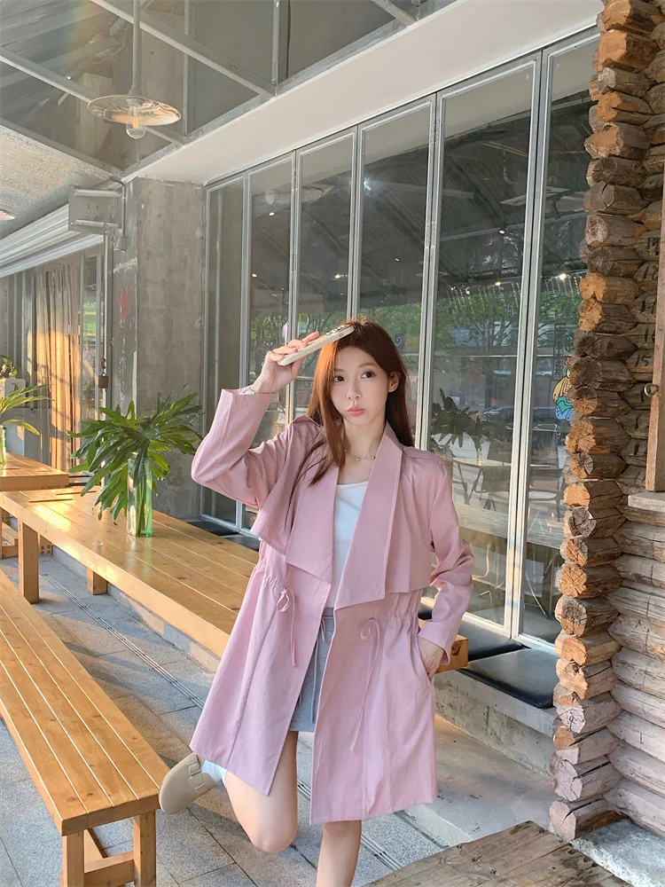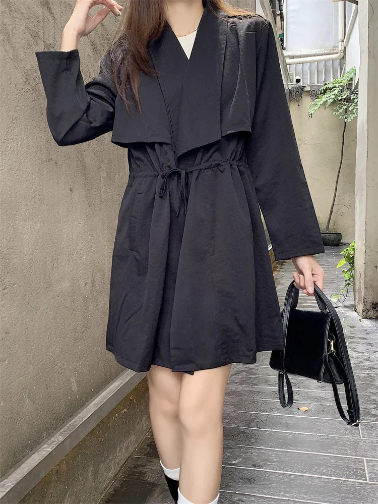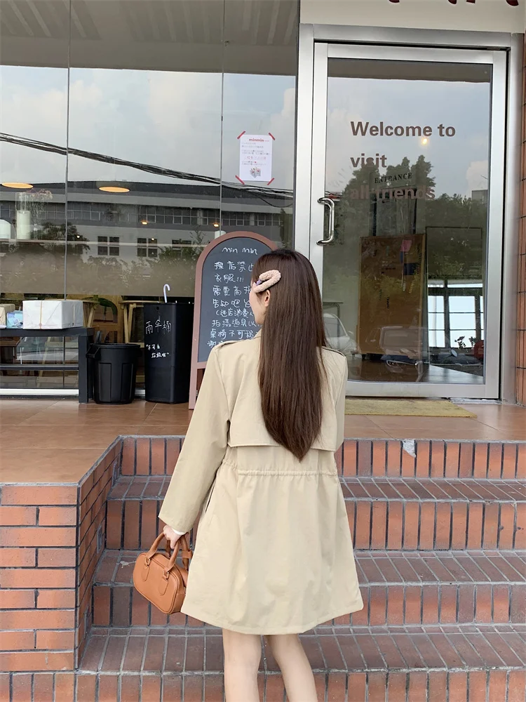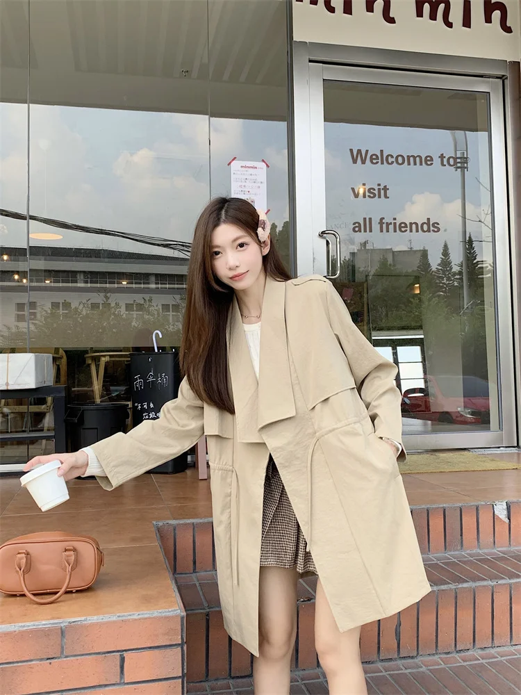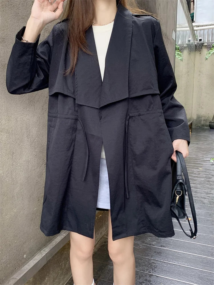 Plus Size Women's Trench Coat 2025 Spring Autumn Elegant Korean Version Drawstring Casual Windbreaker Jacket Versatile Coat