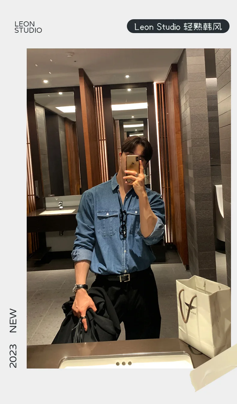 Type: Autumn Men's Light Luxury Retro Popular Denim Shirt