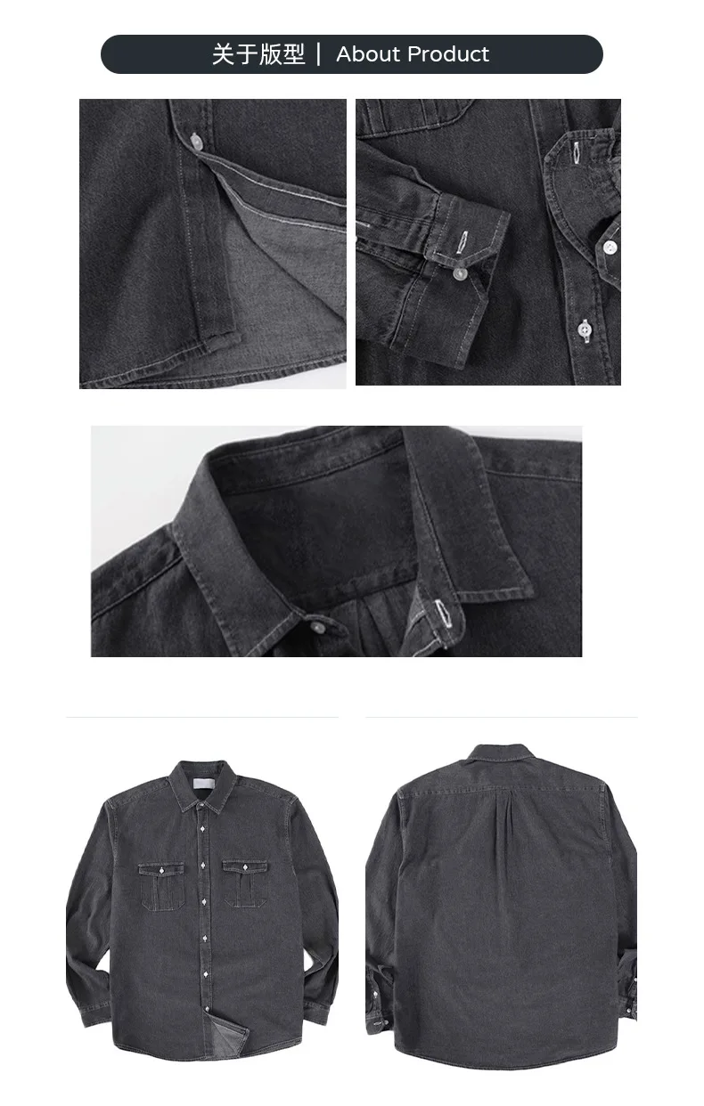 Autumn Men's Light Luxury Retro Popular Denim Shirt Leisure Long Sleeve Button-down Premium Solid Color Business Pocket Shirt