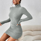 Women Dresses Elegant Party Autumn Winter New Turtleneck Long Sleeves Sexy Sheath Mini Dresses Bodycon Club Knitted Dress