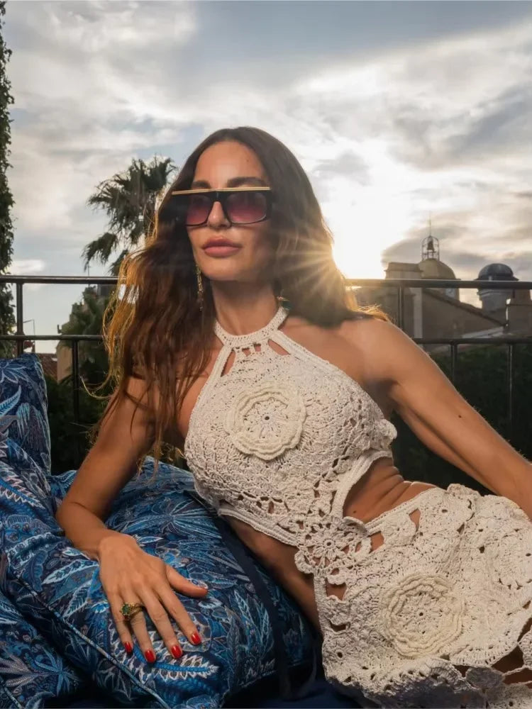 Chic Flower Halter Knitted Dress for Women Sexy Hollow Out Sleeveless Backless Lady Maxi Dresses 2024 Fashion Holiday Beachwear