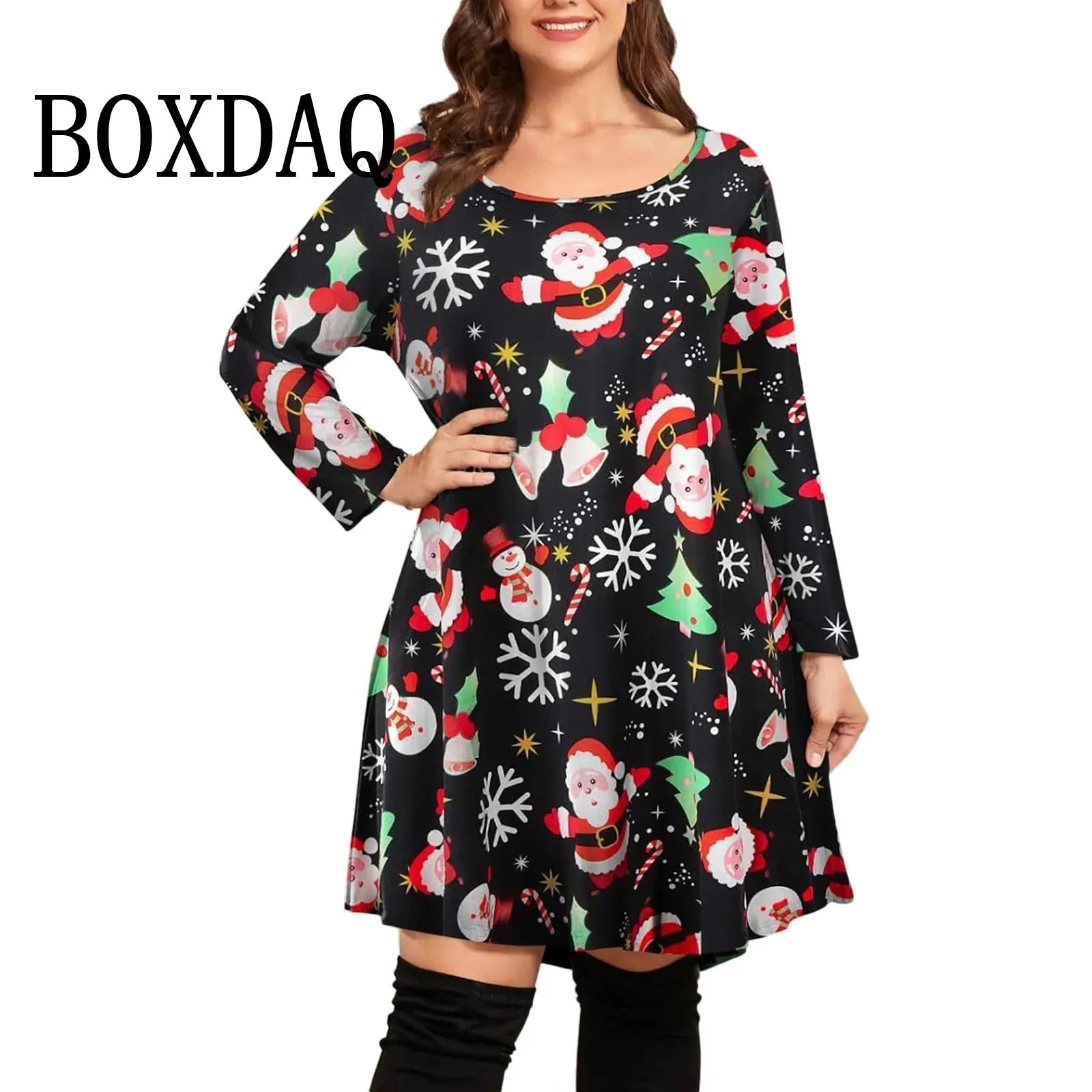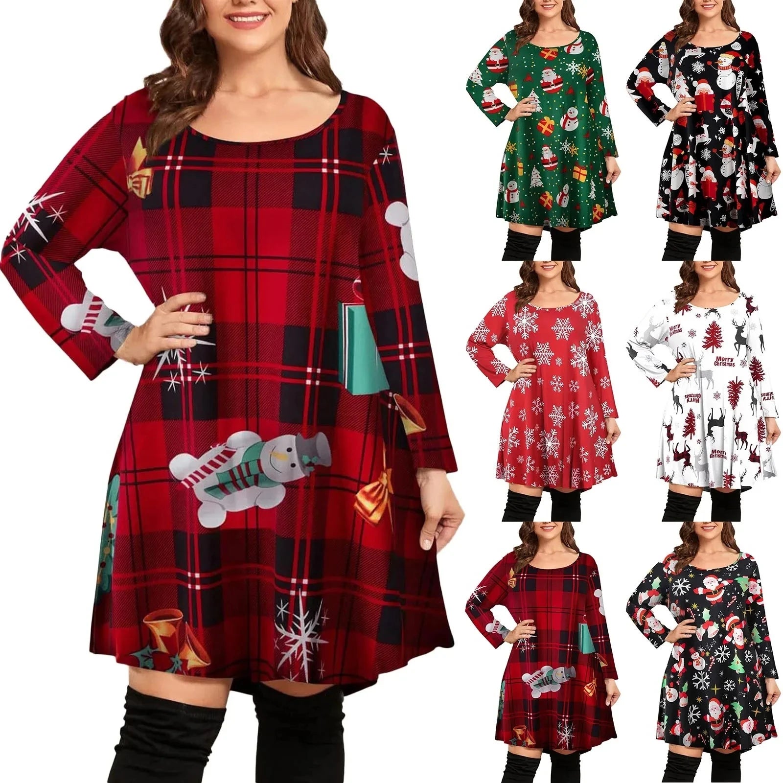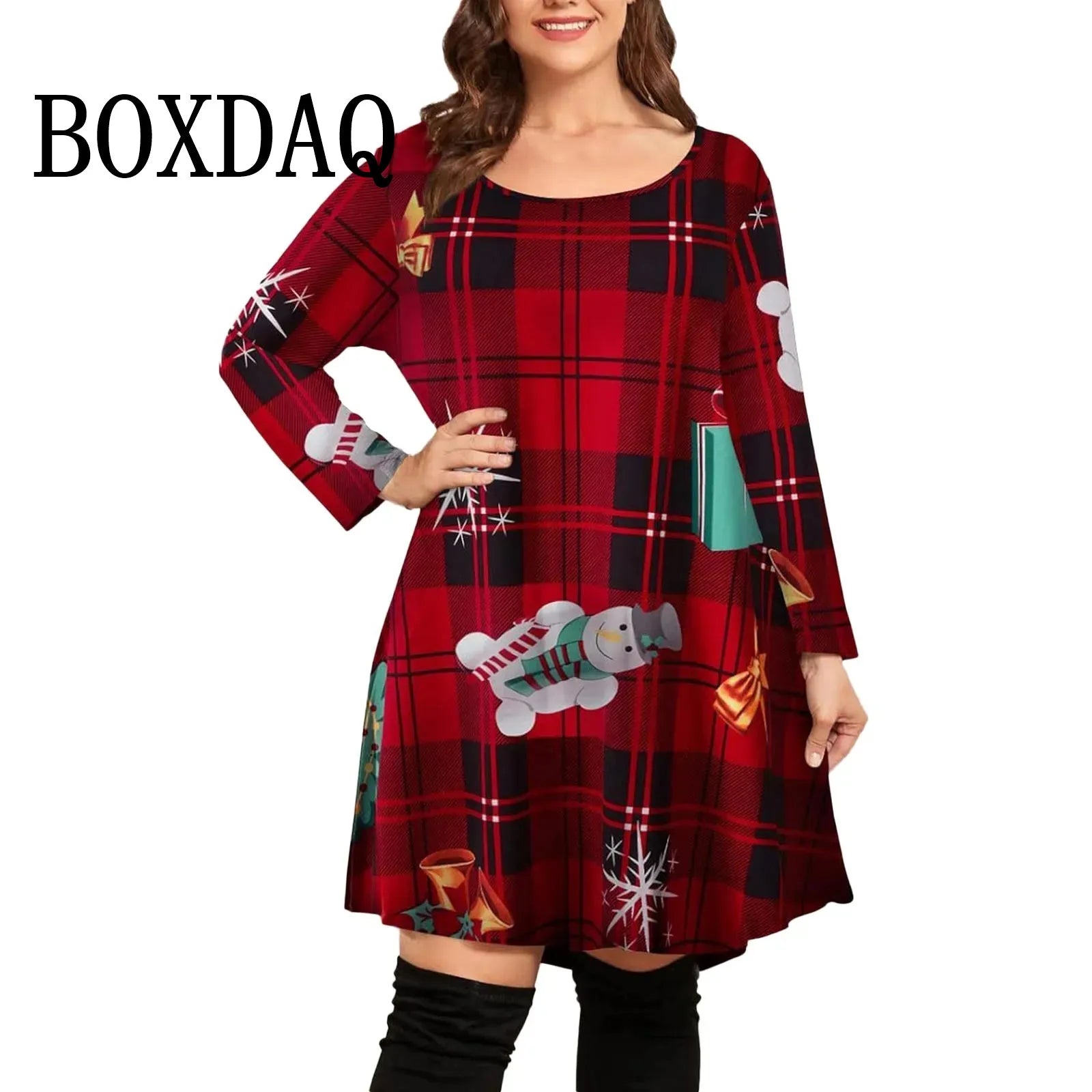 Casual Christmas Dress For Women Plaid Long Sleeve Christmas 3D Printed Loose A-Line Dress Plus Size Autumn Winter Dresses 9XL