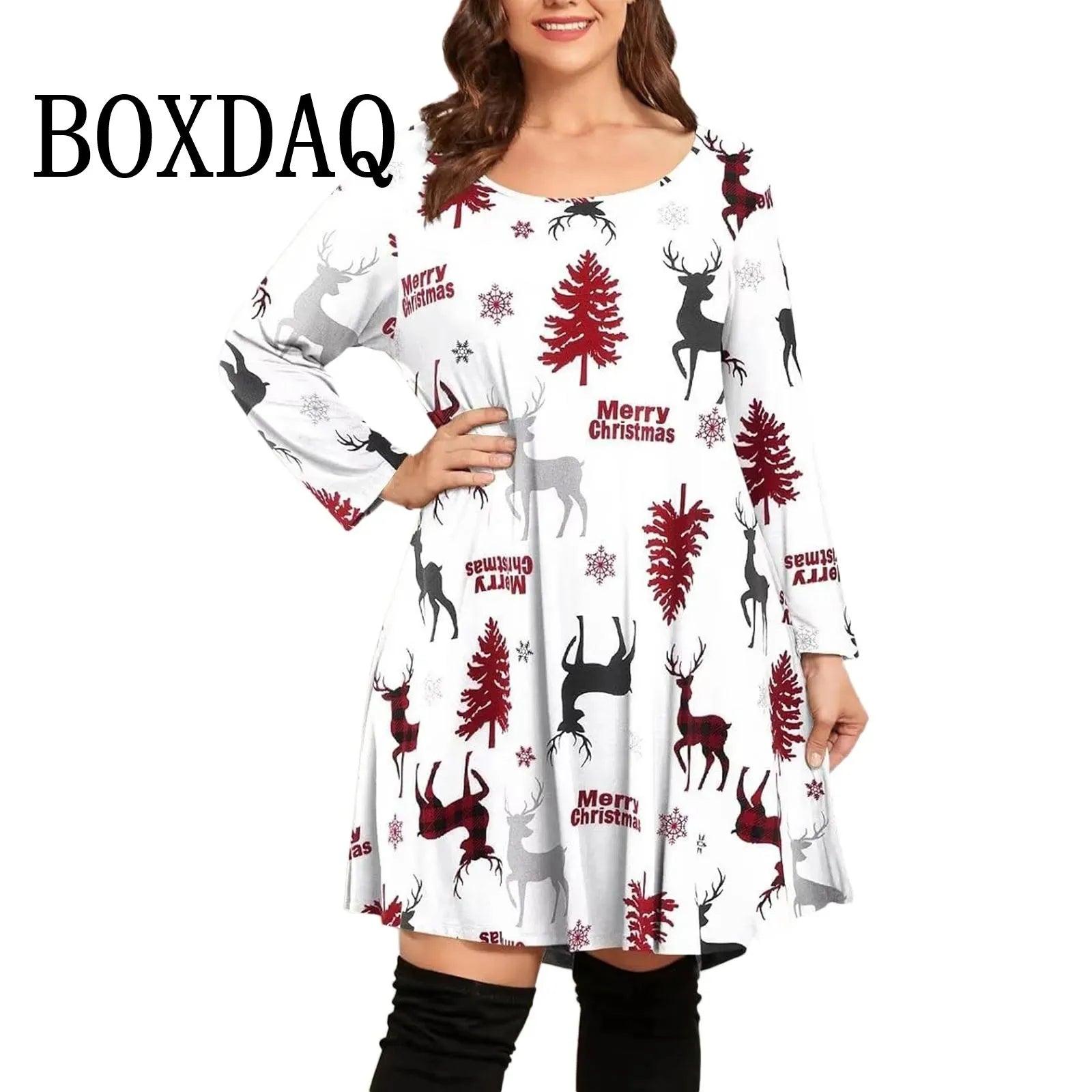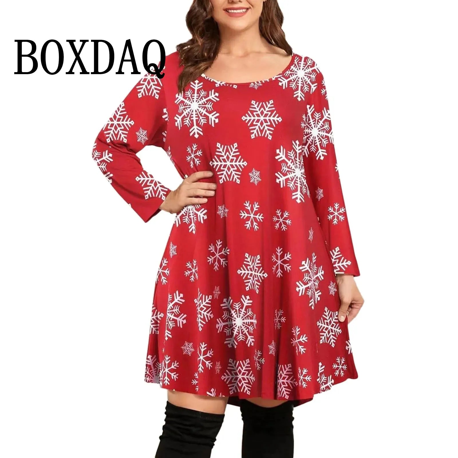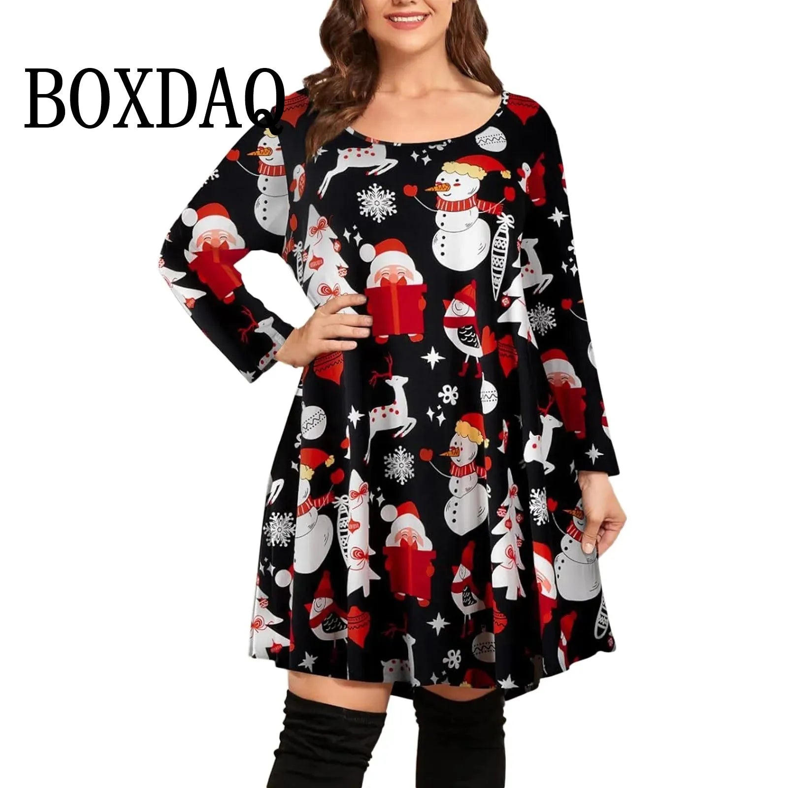 Casual Christmas Dress For Women Plaid Long Sleeve Christmas 3D Printed Loose A-Line Dress Plus Size Autumn Winter Dresses 9XL