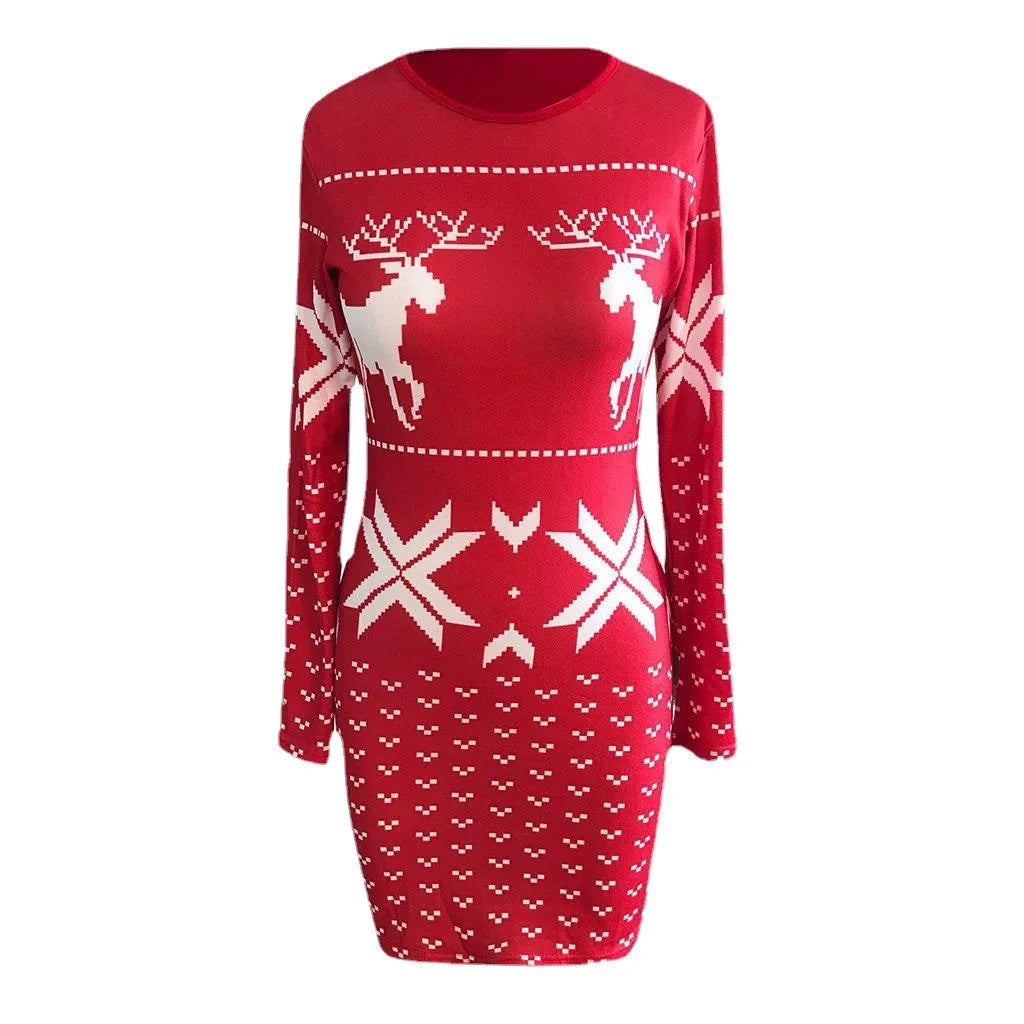 Women Summer Dress Autumn 2021 Christmas Printing Tight Package Hip Show Thin Long Sleeve Dresses Casual Vestidos YML0075
