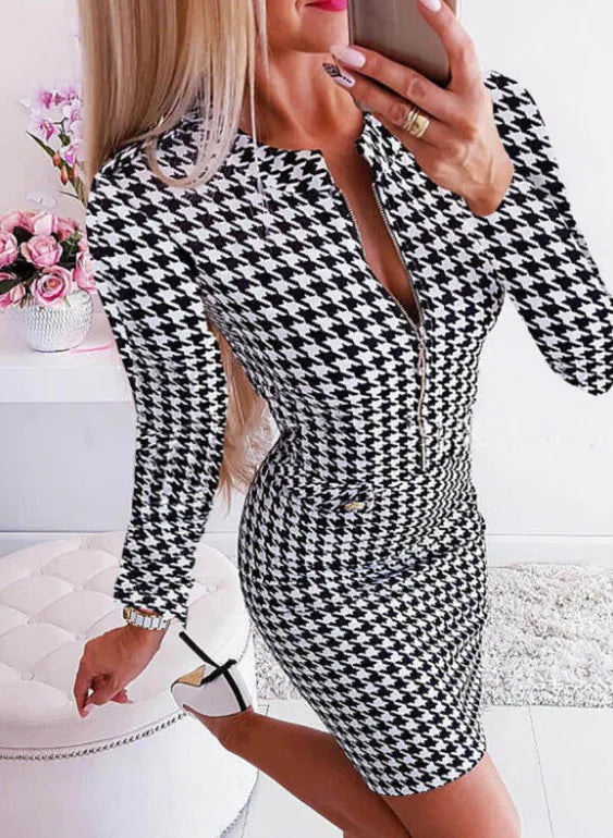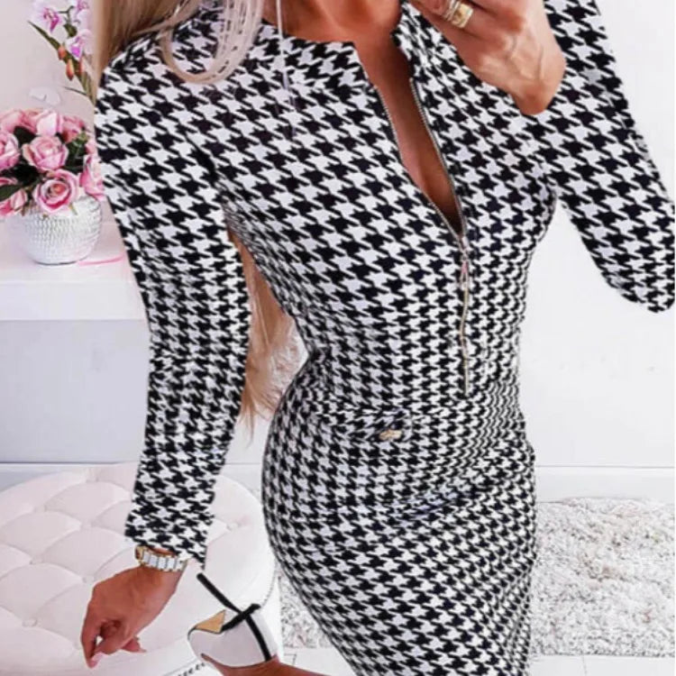 Dress Women Summer 2021 Hot Style Plover Dress Long Sleeve Houndstooth Mini Dresses Casual Vestidos ZXPa19