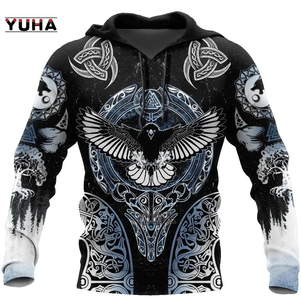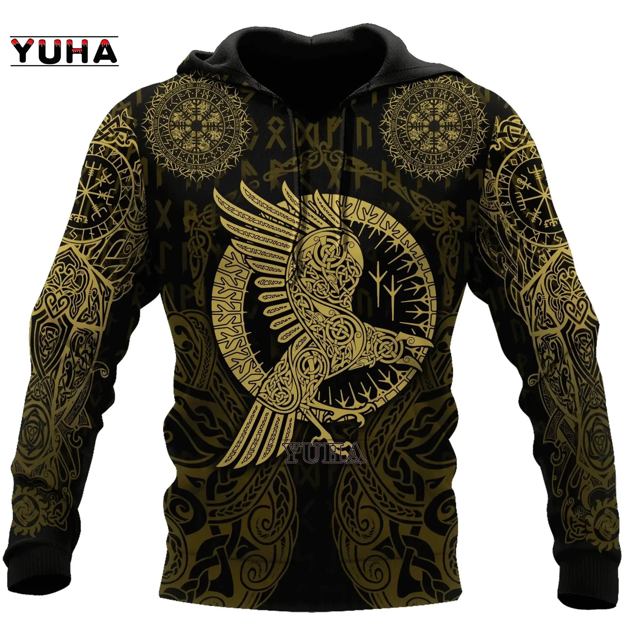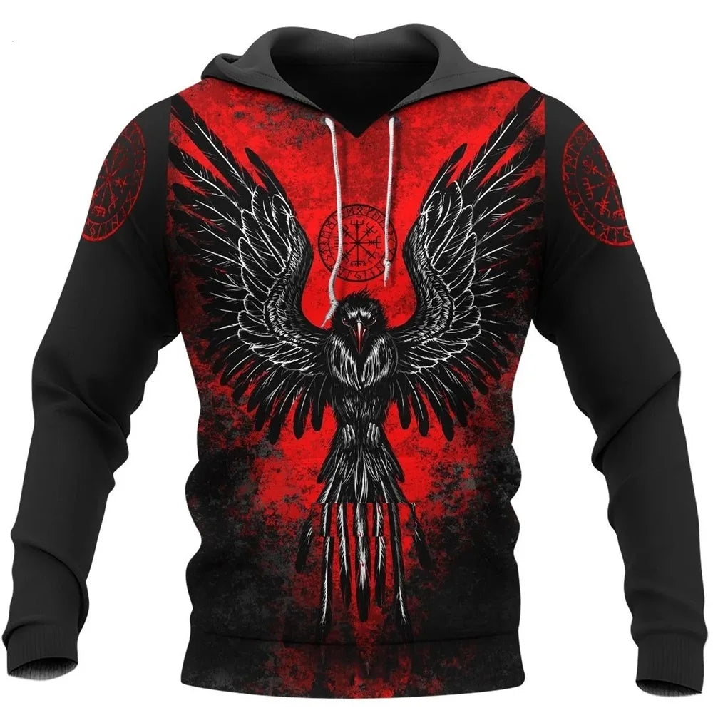Eagle/ Raven Tattoo Vegvisir Red 3D All Over Printed Men's Hoodie & Sweatshirt Unisex Zip Hoodies Casual Tracksuits