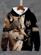 Men'S 3D White Wolf Print Hoodie, Casual Long Sleeve Pullover with Drawstring Pocket, 100% Polyester Slight Stretch Men Clothing