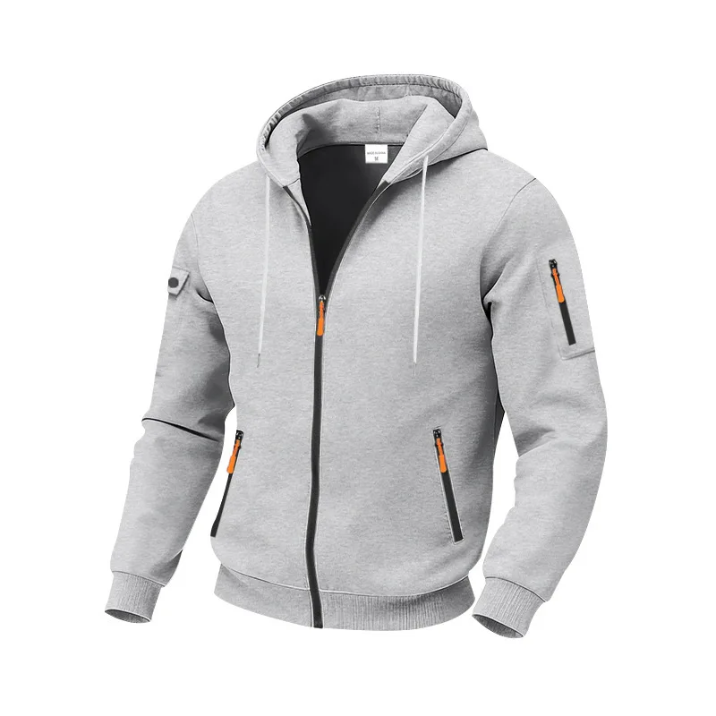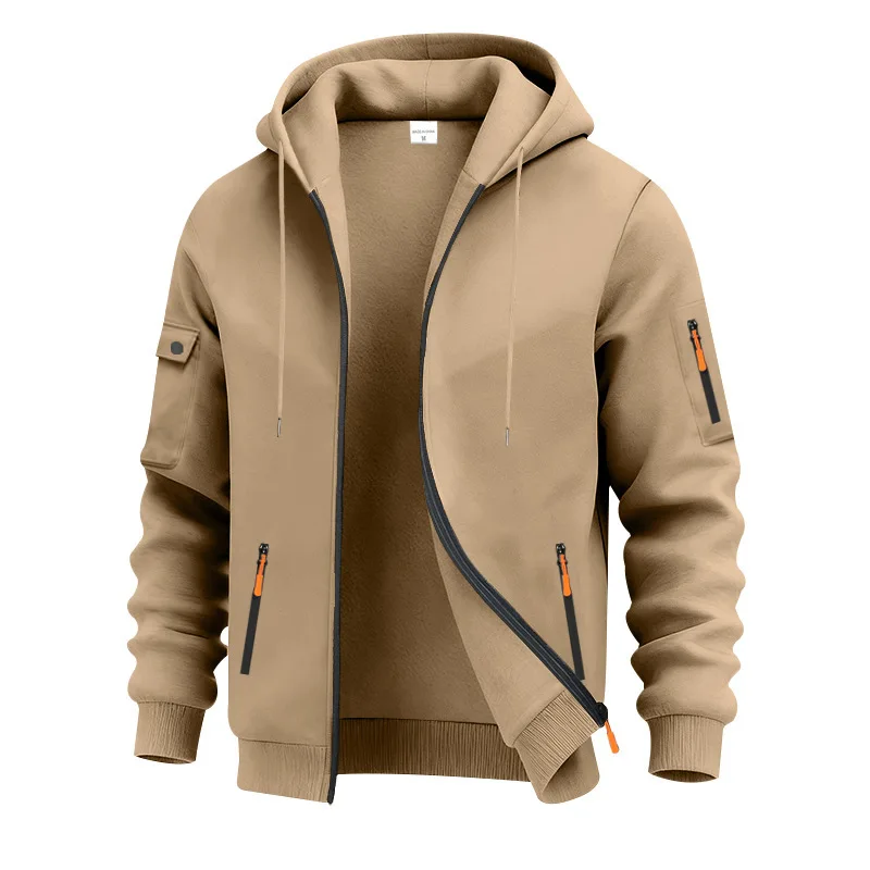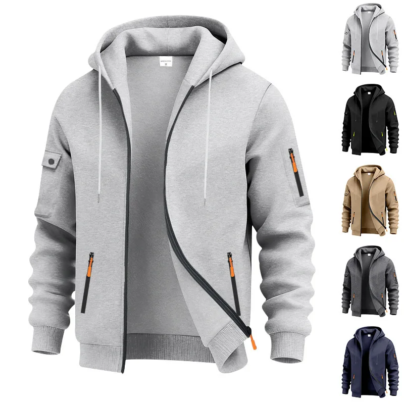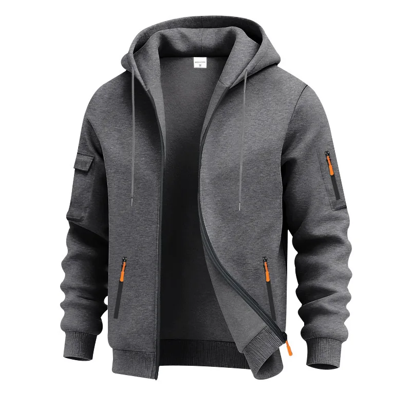 The zippered hooded design provides extra warmth and convenience during chilly days.