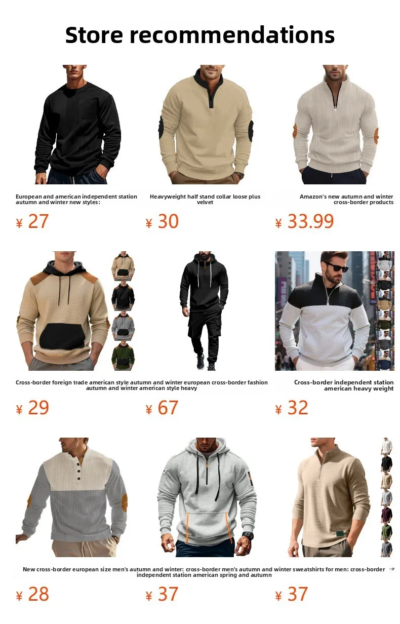 Men's Winter Hooded Zipper Fleece Lined Loose Fit Long Sleeve Sweatshirt Casual Workwear Open Cardigan Polyester Fiber