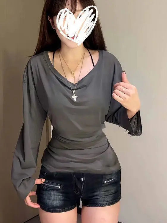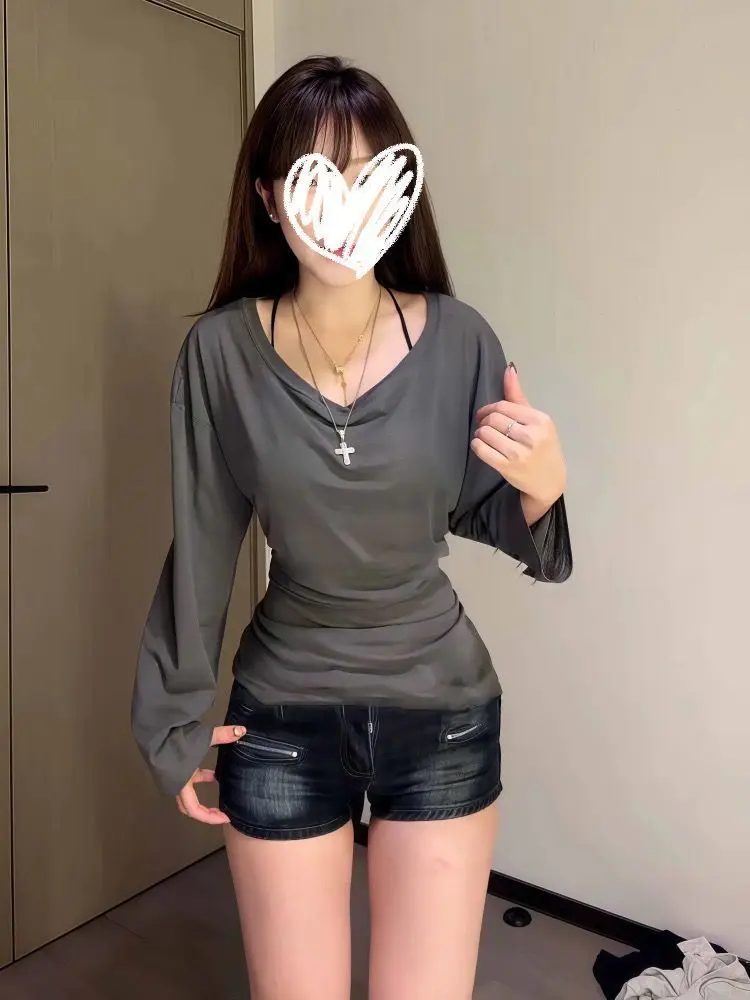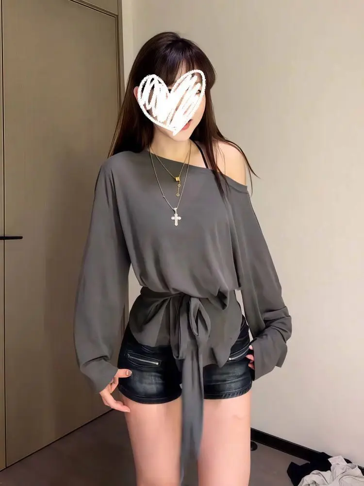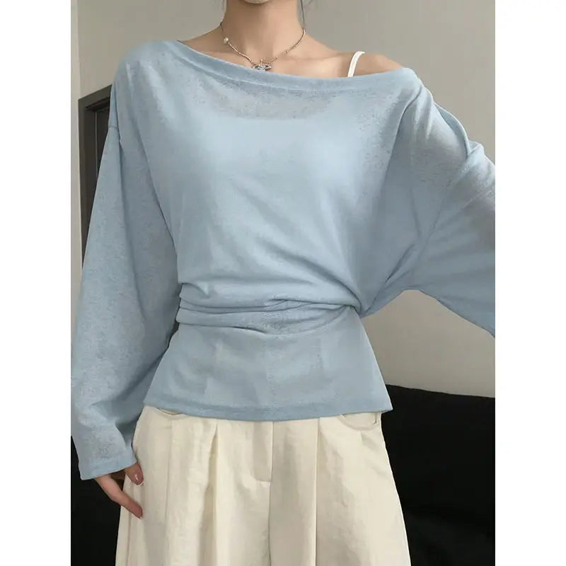 Slim Fit Long Sve T-irt Summer Lightweight See tough Belted Loose Design Moisture ng Color Commute Sle