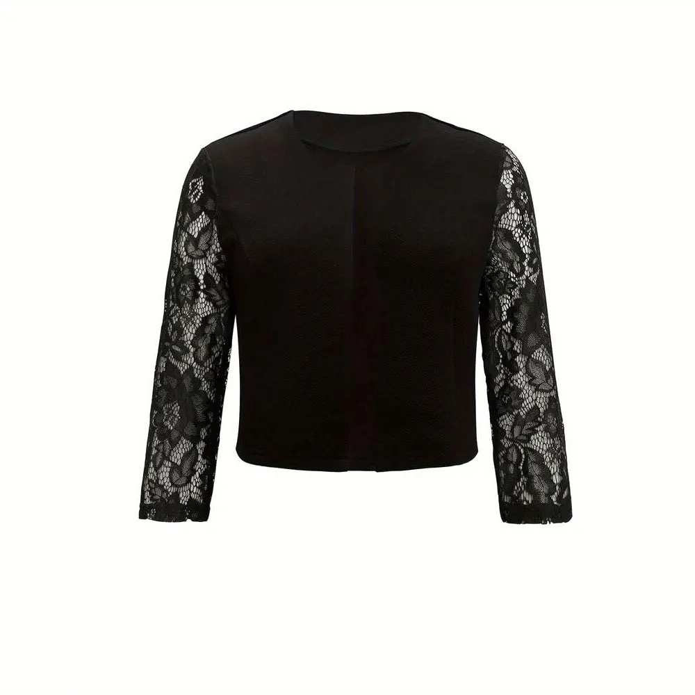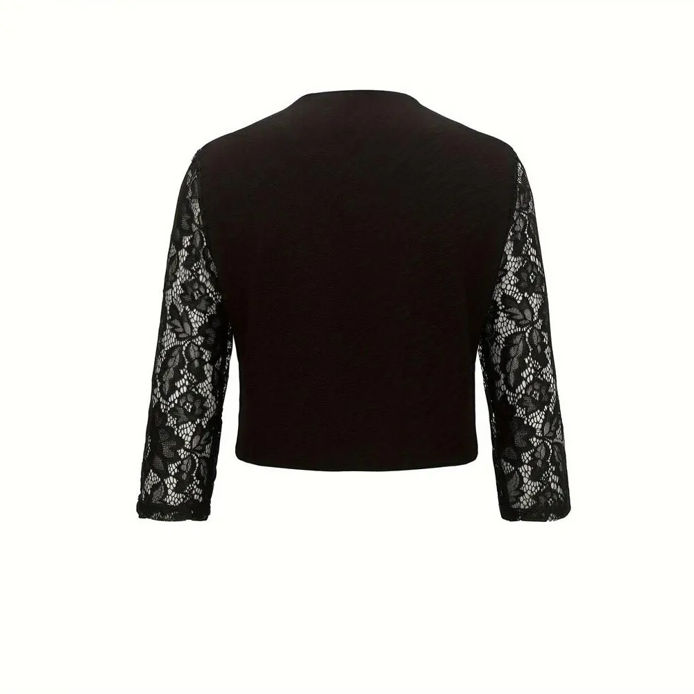 Women' Solid Casual Outwear Lace Long Sleeve Jacket Y2k Spring Autumn Elegant Zipper Coat Office Wear Slim Office Coat Crop Top