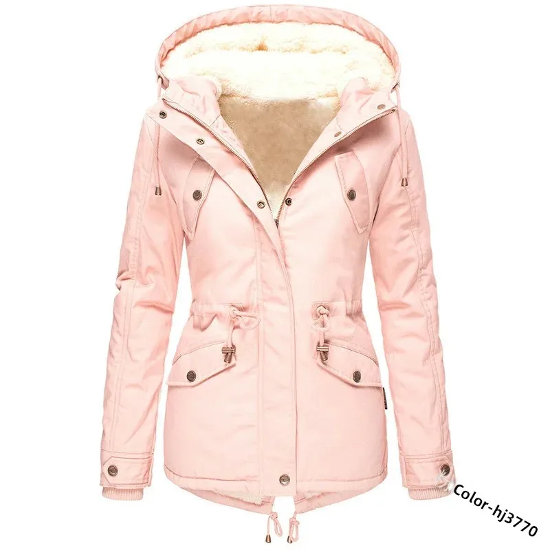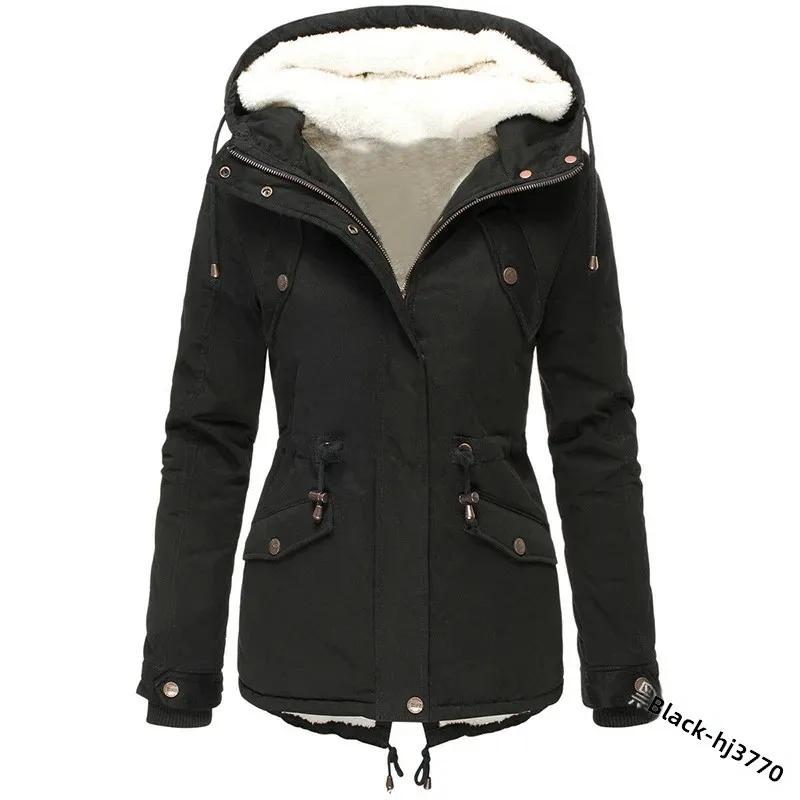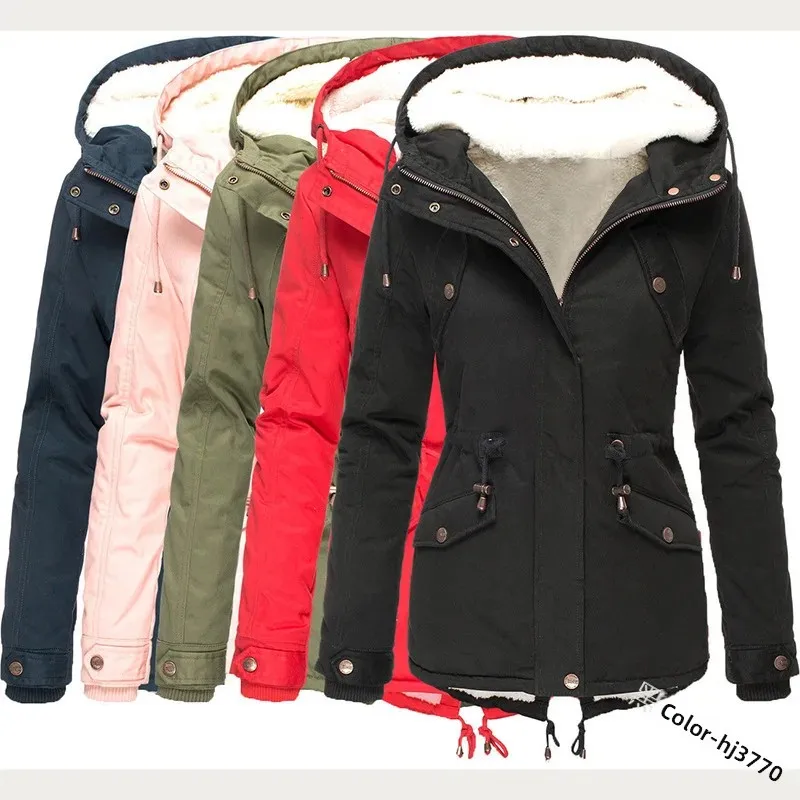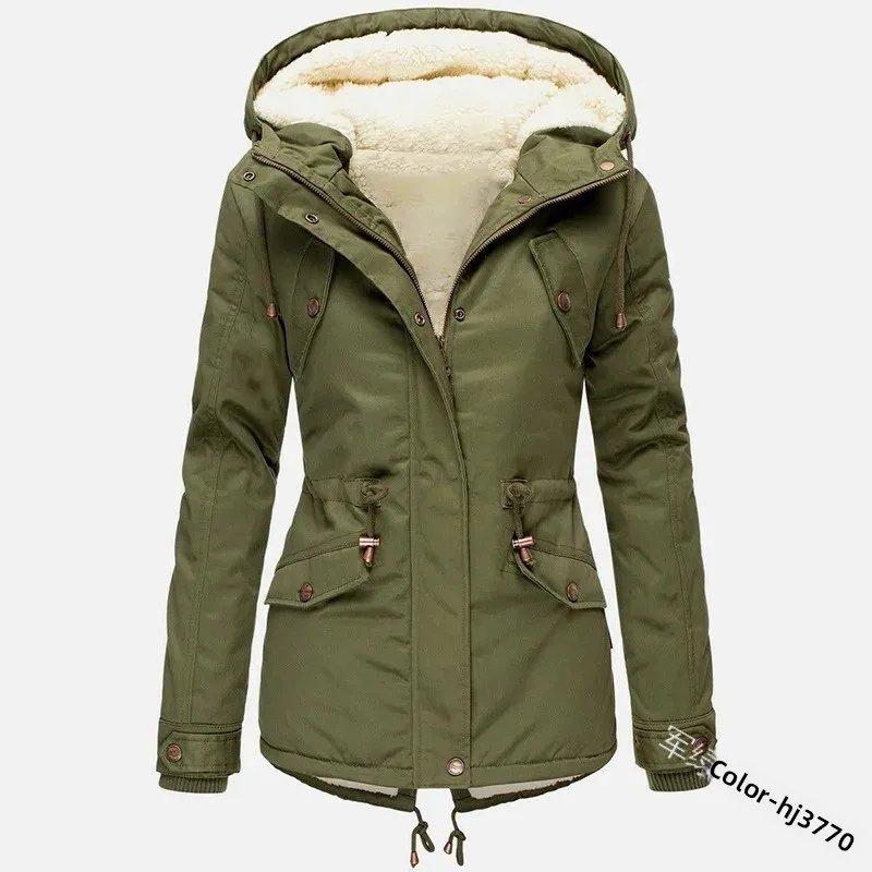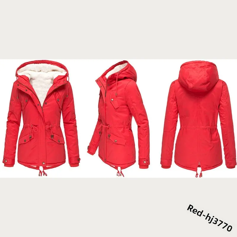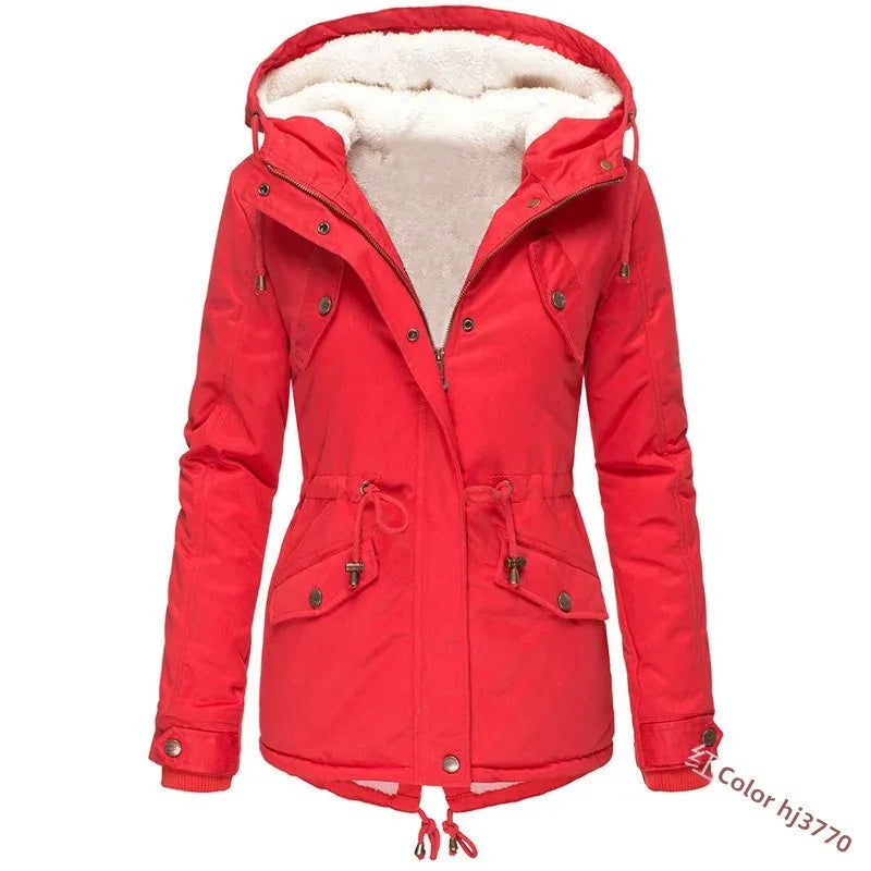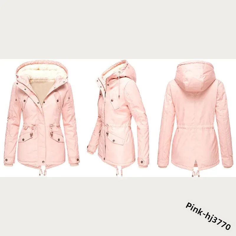 Winter Thickened Hooded Slimming Fleece Lined Women's Cotton Jacket Warm Coat Long Sleeve Mid-Length Coat for Women