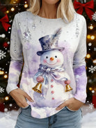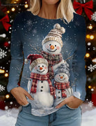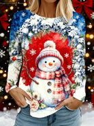 Christmas Cute snowman 3D Print Round Neck Women's Long Sleeve T-shirt Polyester New Festival Red Pullover Women Clothing Tops