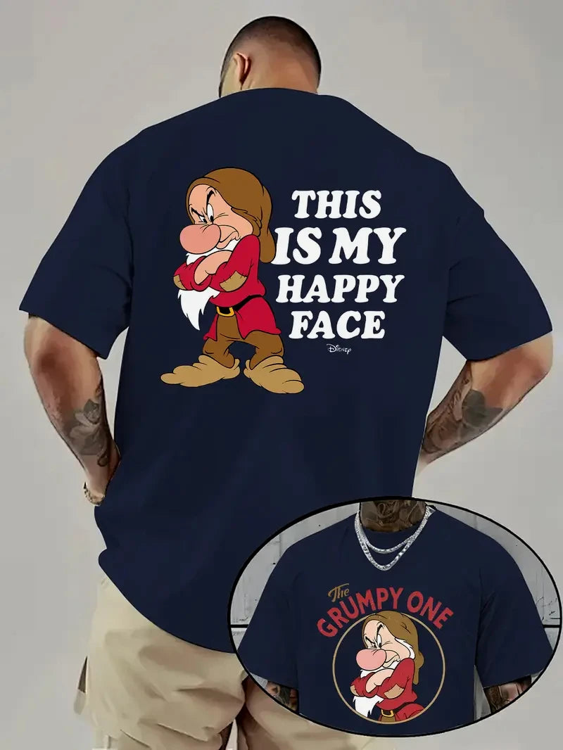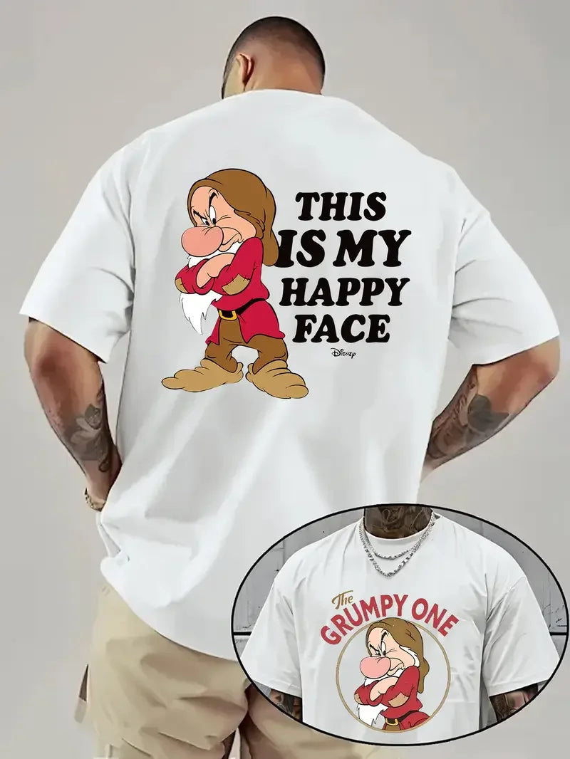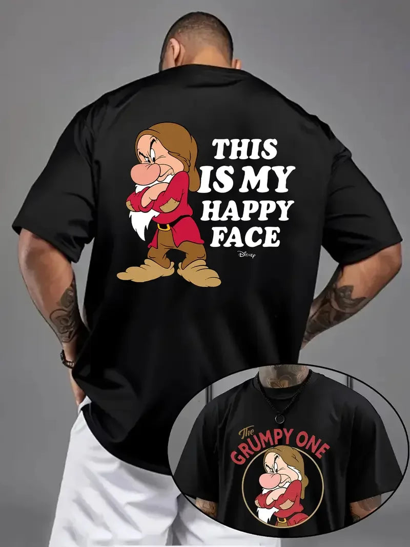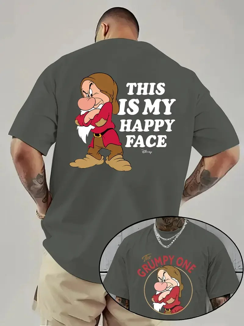 Disney Seven Dwarfs THIS IS MY HAPPY FACE Oversized Men's Women T Shirt Casual Cotton Tops Tees Vacation Unisex Clothing Couple