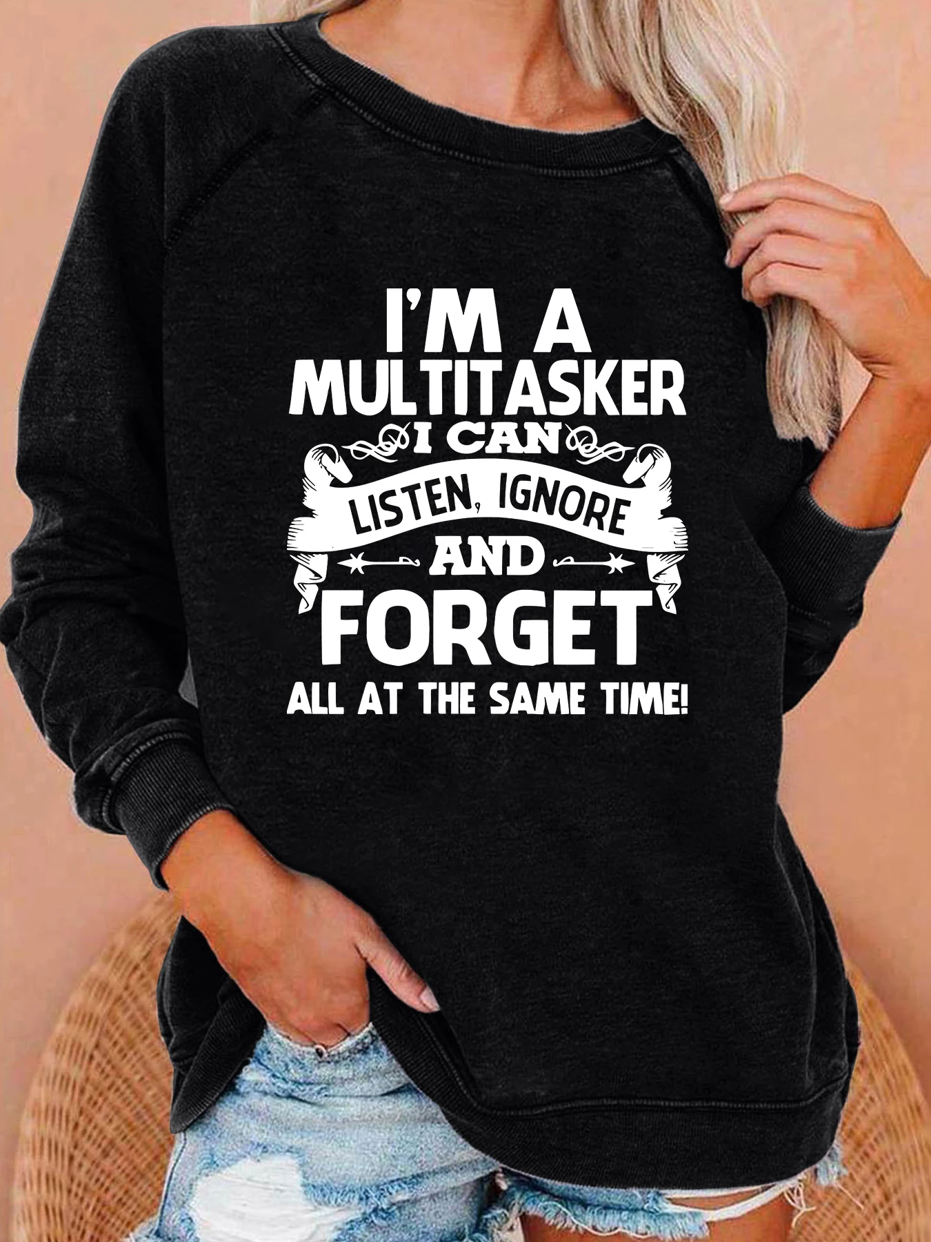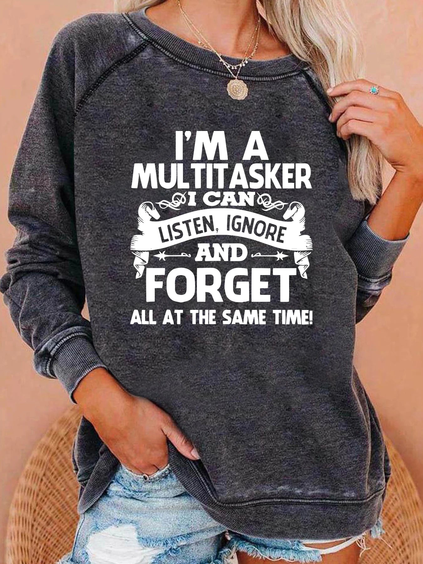 I'M A MULTITASKER I CAN AND FORGET Print Women Sweatshirt Long Sleeve Casual Crew Neck Top Women Clothes for Fall & Winter
