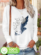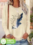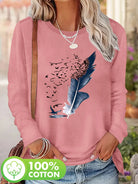 Women'S Cotton Long Sleeve T-Shirt Leaf and Birds Casual Top Fall Winter Fashion Ladies T Shirts Clothing Artistic Print Tee