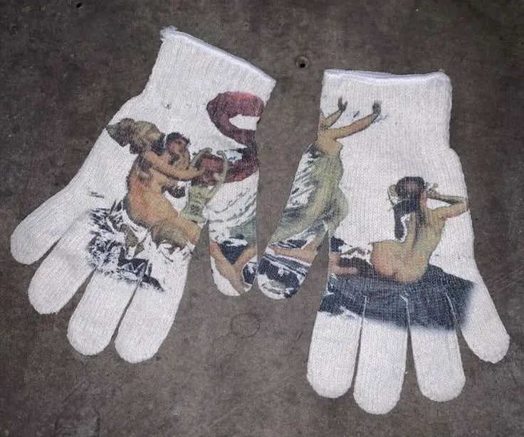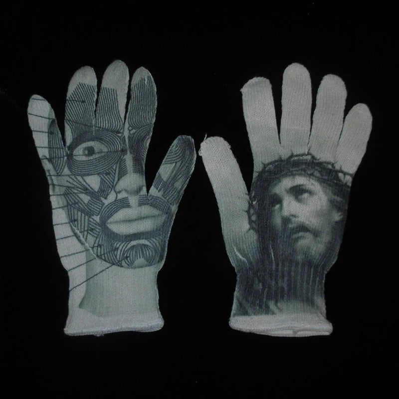 Women Knitted Glove Winter Screen High Fashion Ladies Glove Thicken Warm Compression Men Casual Mitten Y2K figure Pattern Gothic