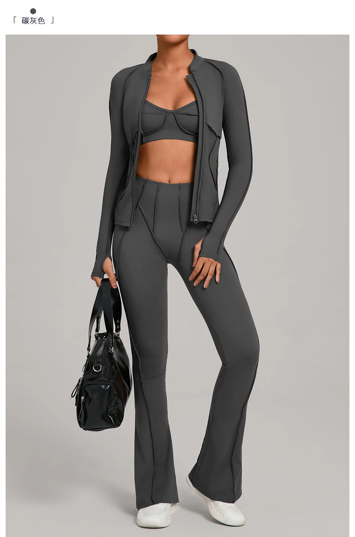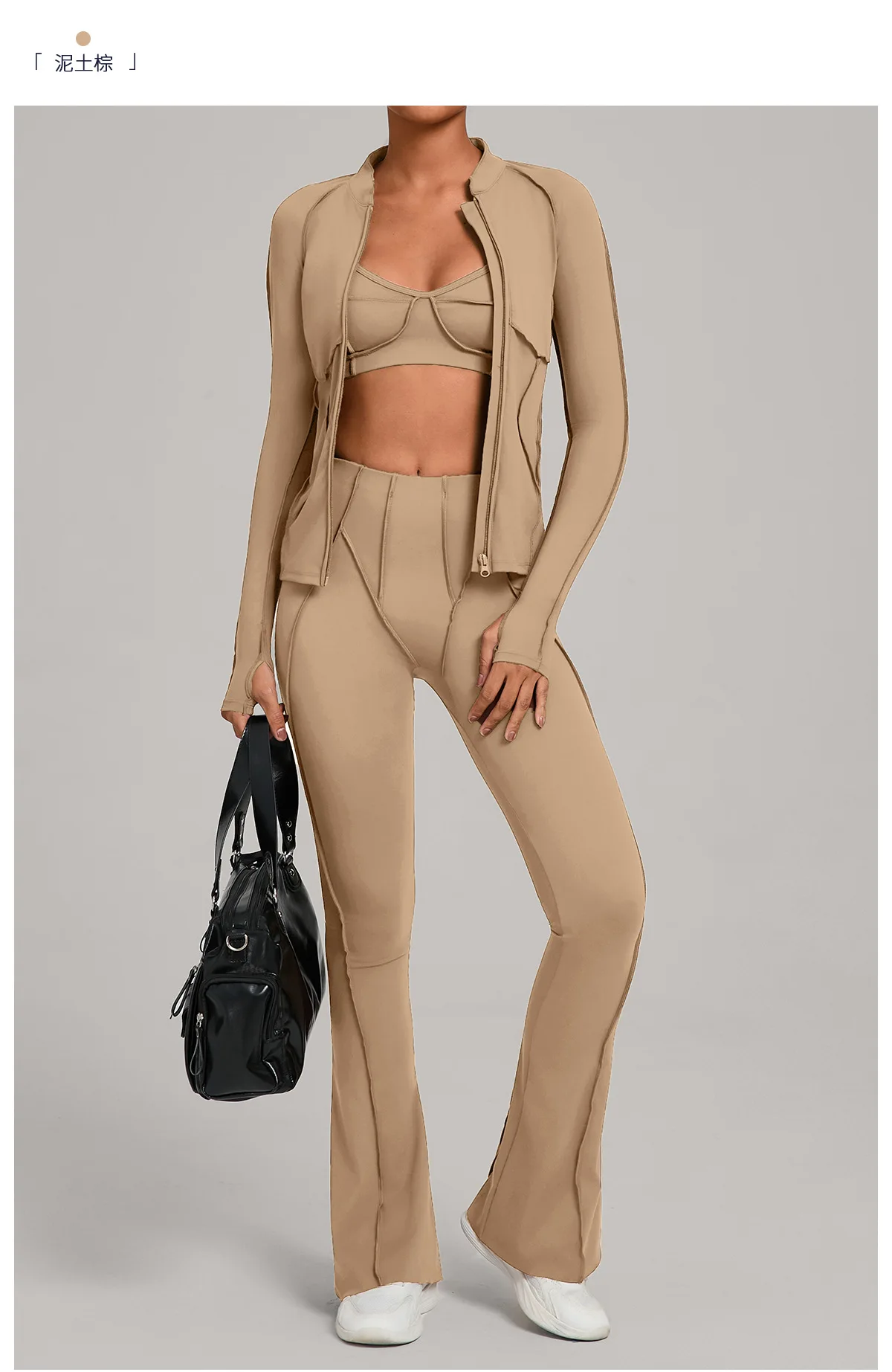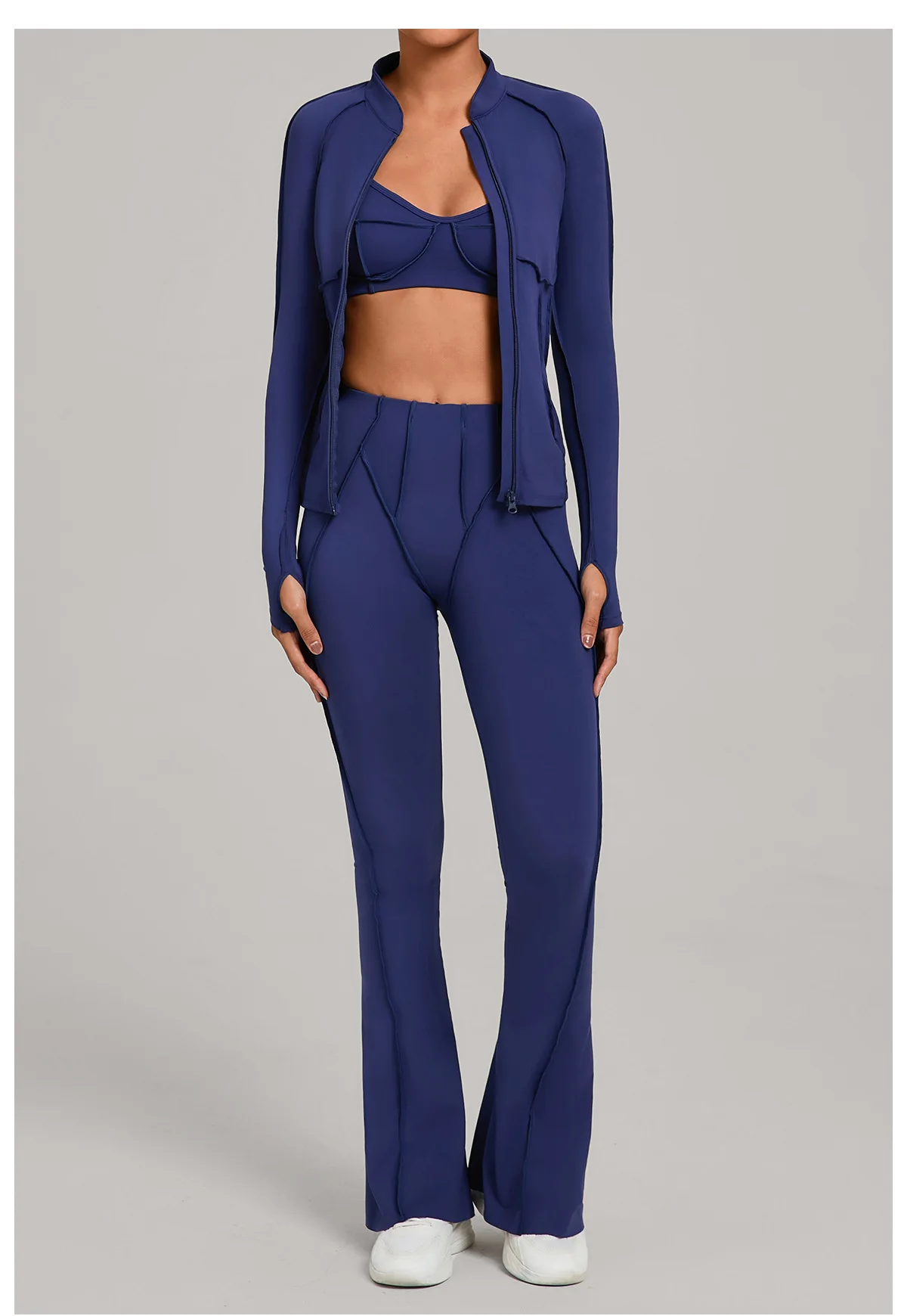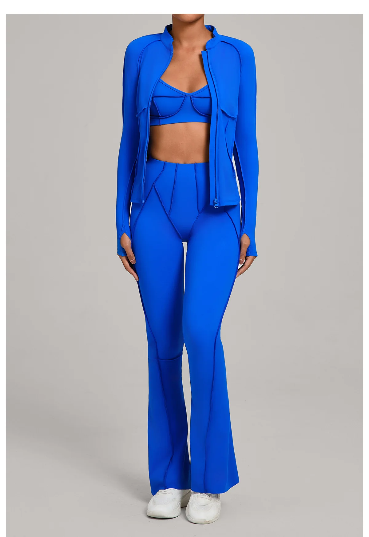 3 Pieces Sports Suit for Fitness Women Sportswear Long Sleeve Gym Clothes Woman Outfit Workout Set Winter Tracksuit Coffee Blue