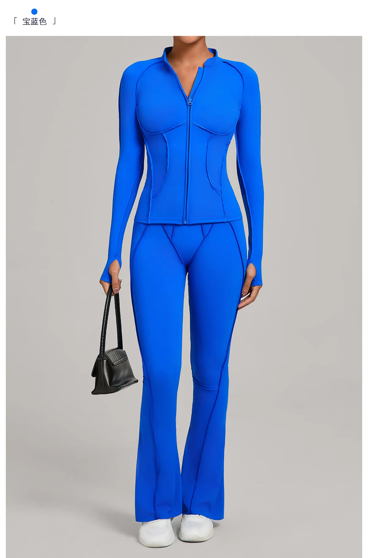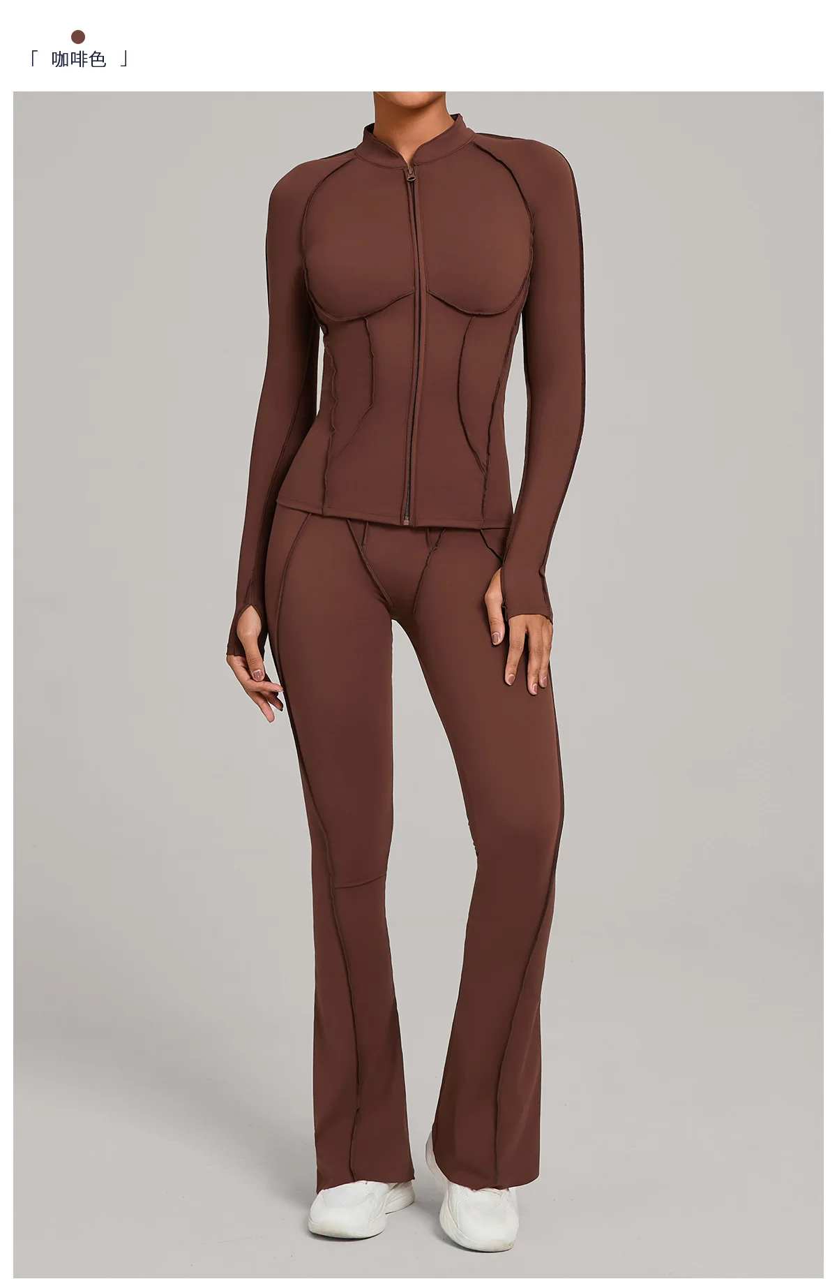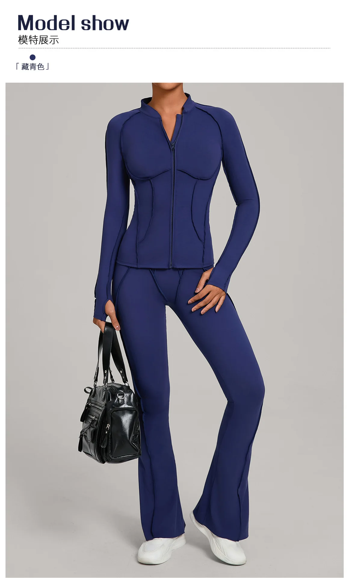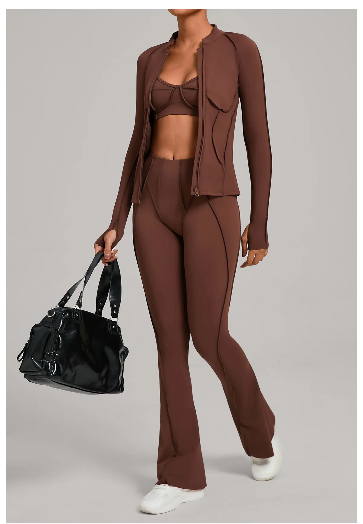 3 Pieces Sports Suit for Fitness Women Sportswear Long Sleeve Gym Clothes Woman Outfit Workout Set Winter Tracksuit Coffee Blue
