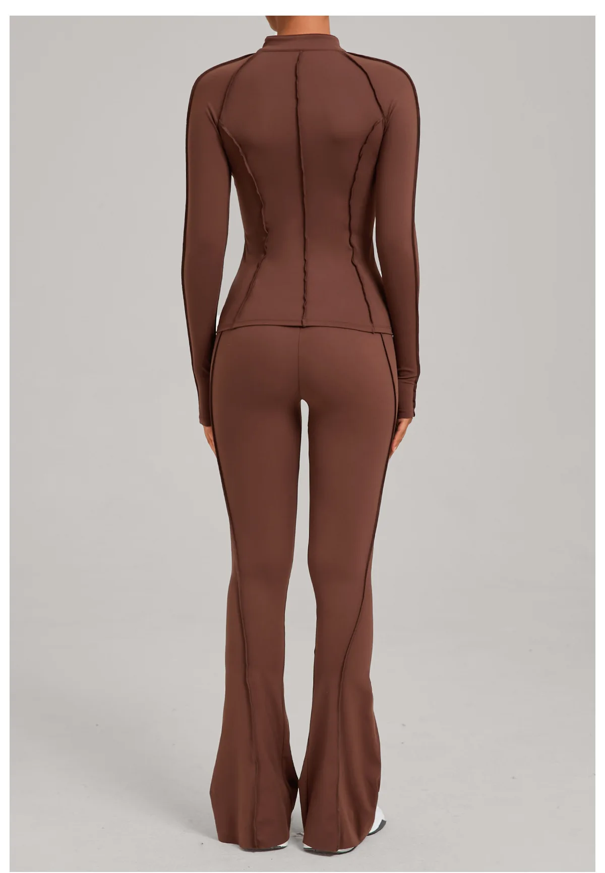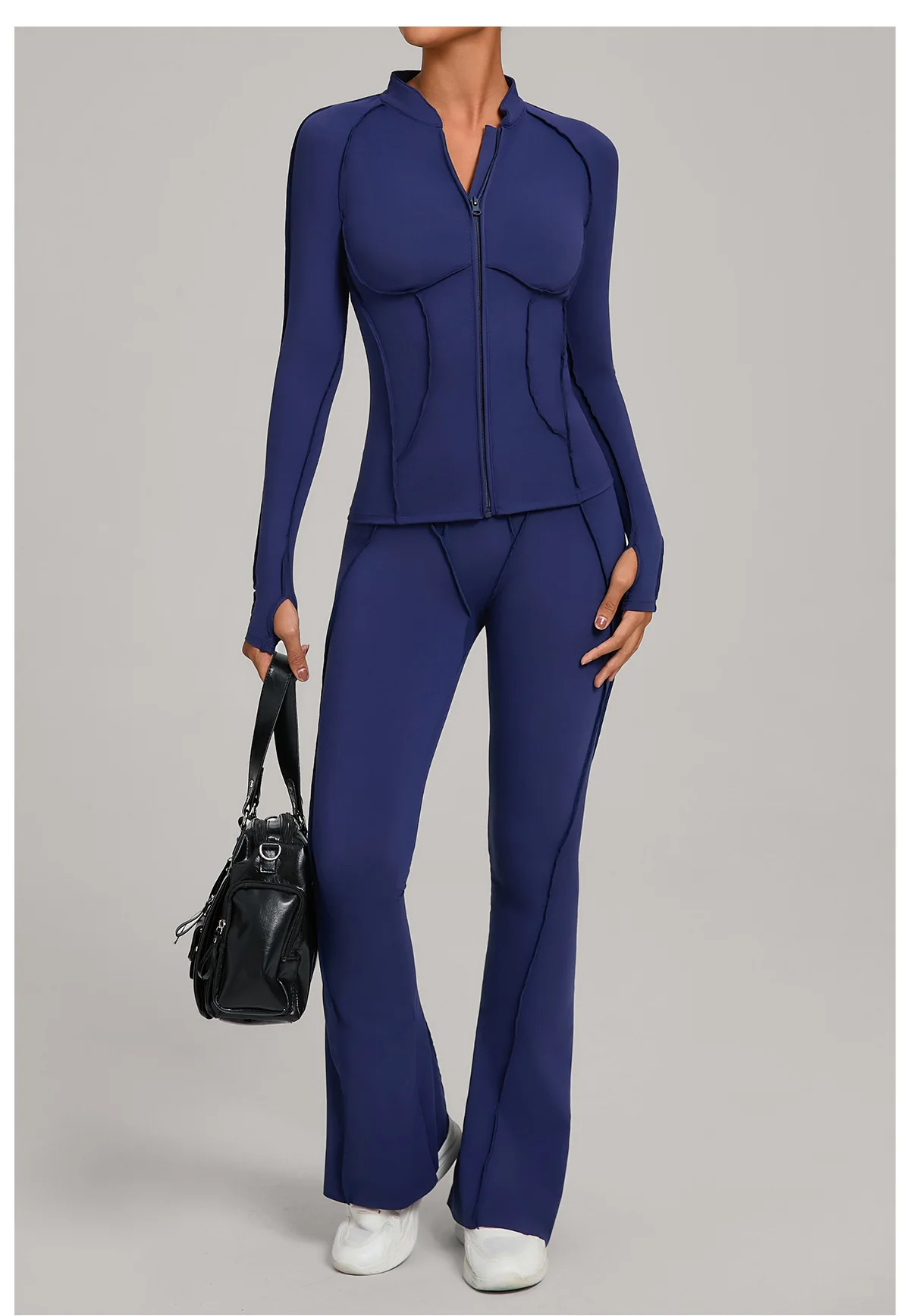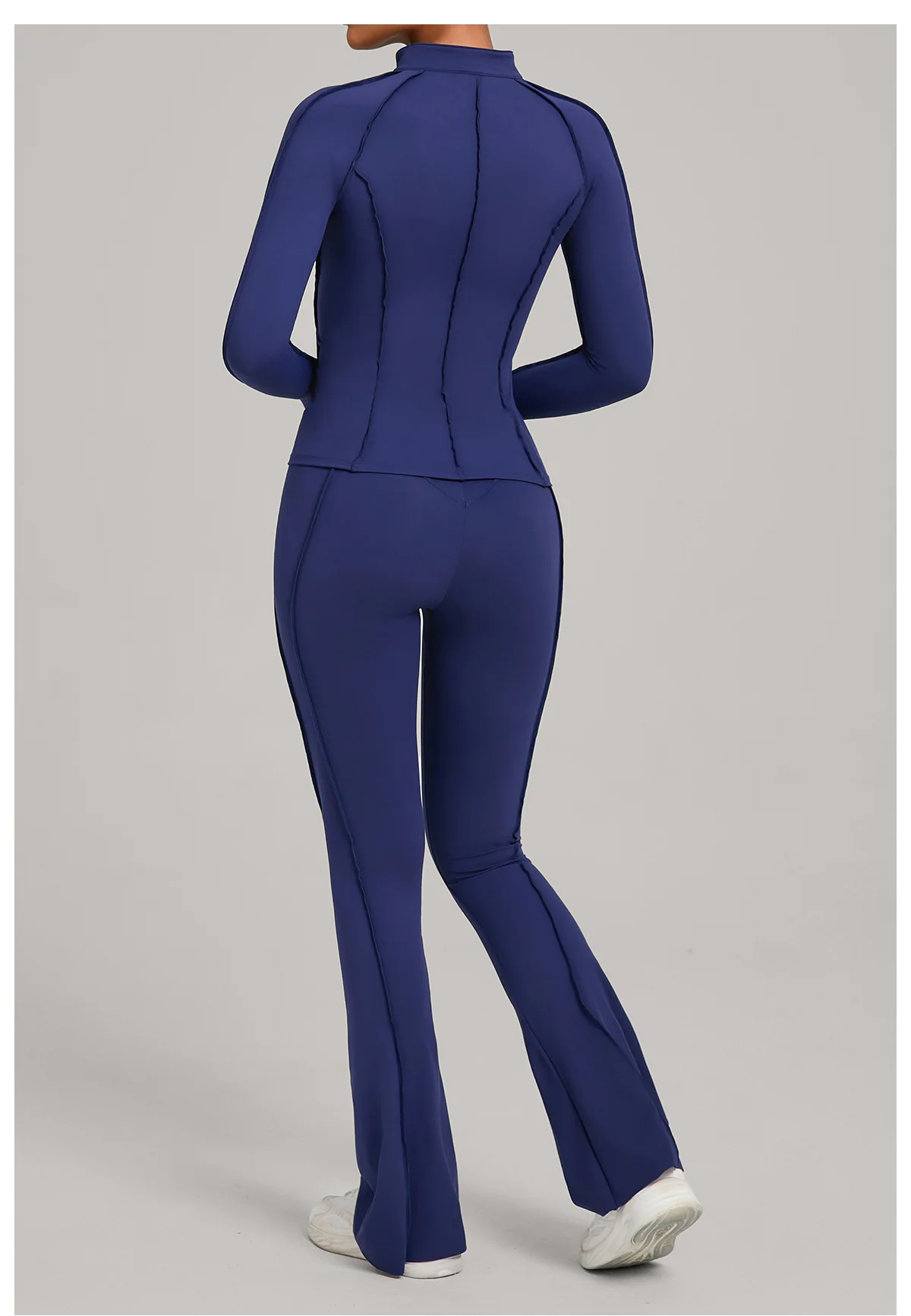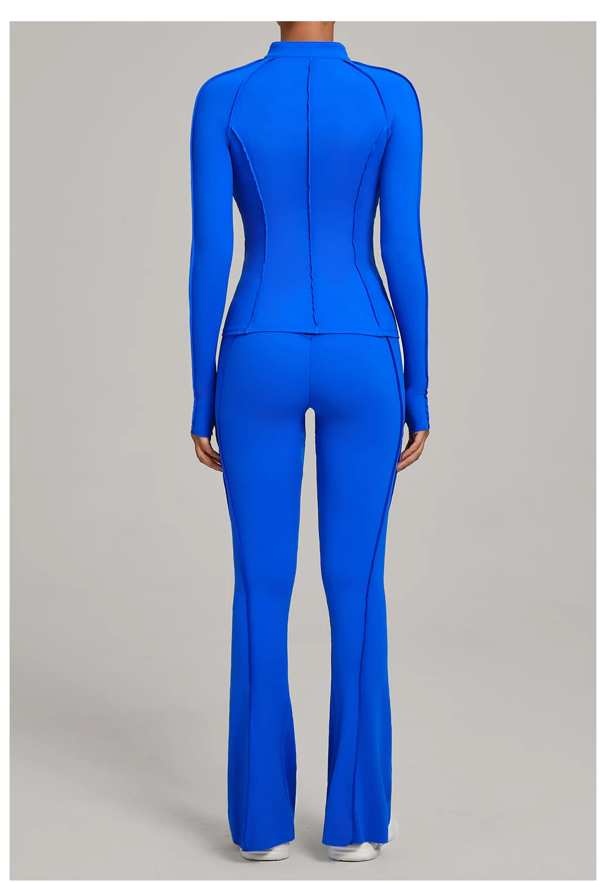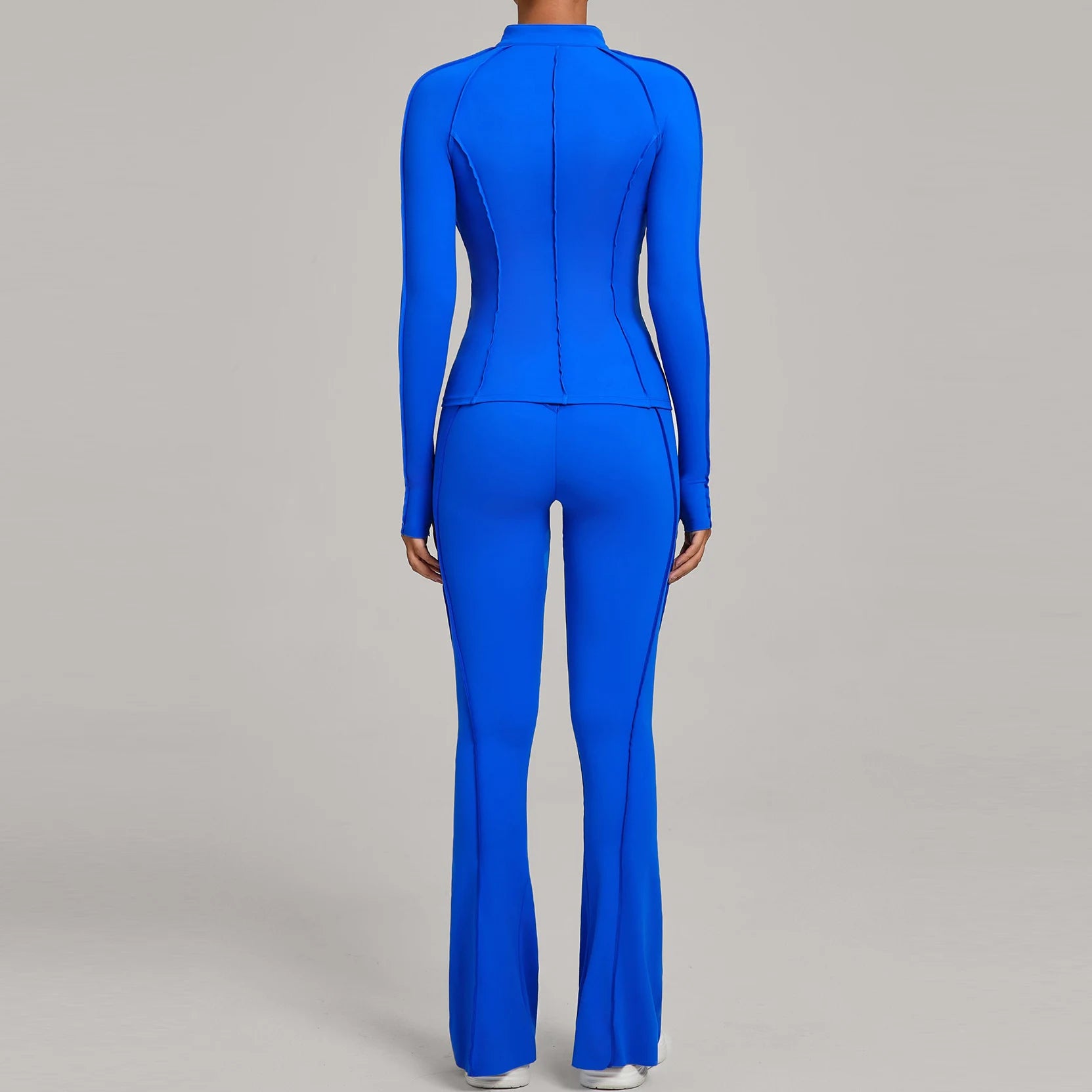 3 Pieces Sports Suit for Fitness Women Sportswear Long Sleeve Gym Clothes Woman Outfit Workout Set Winter Tracksuit Coffee Blue