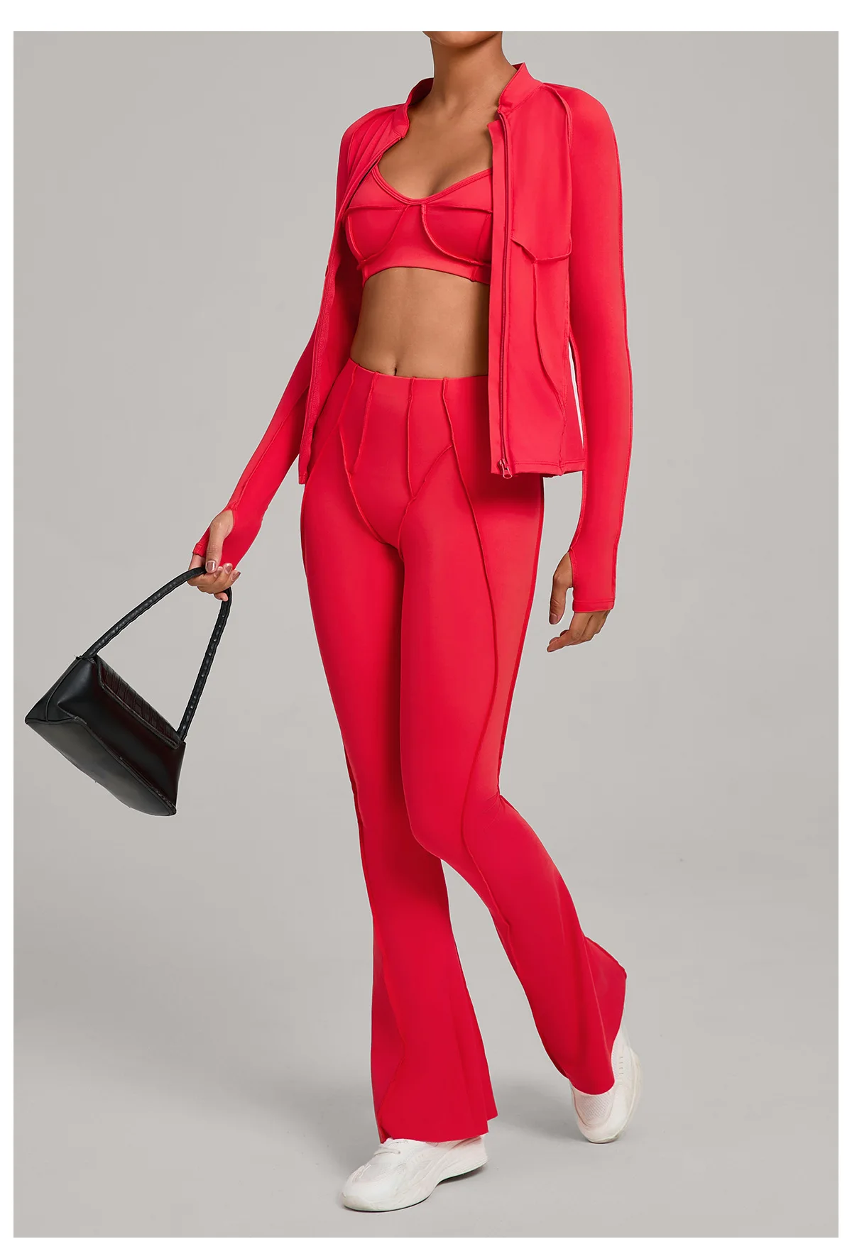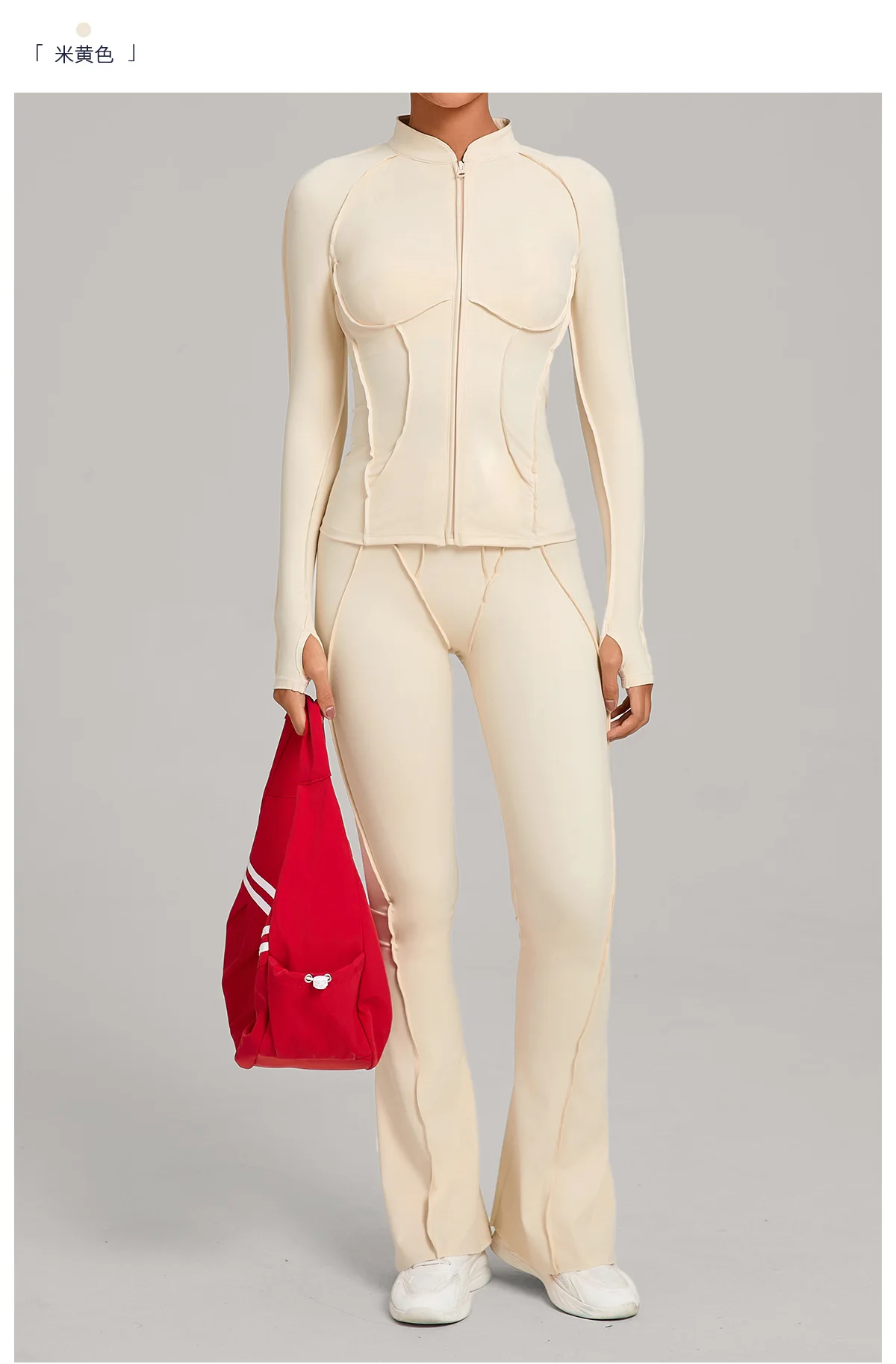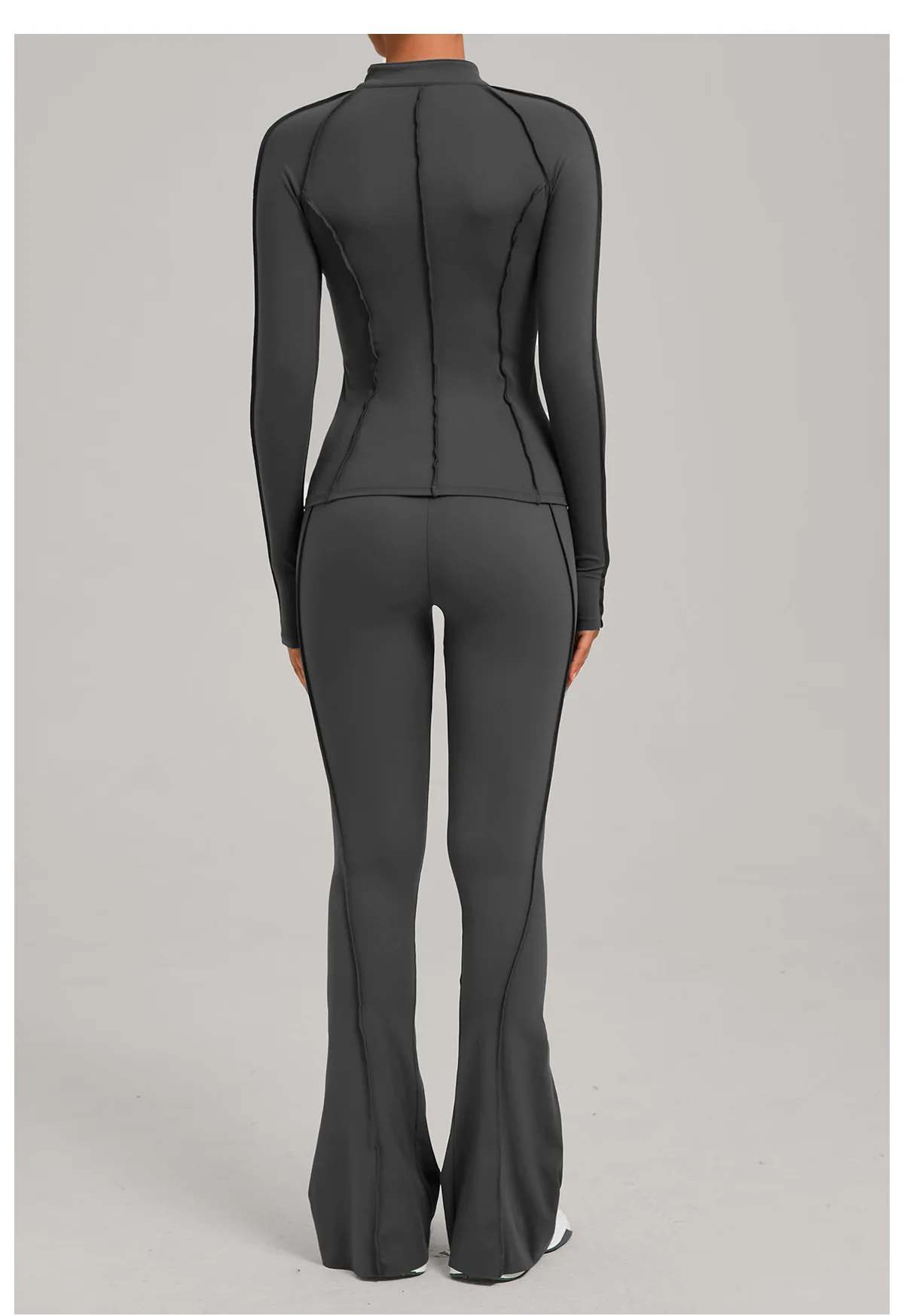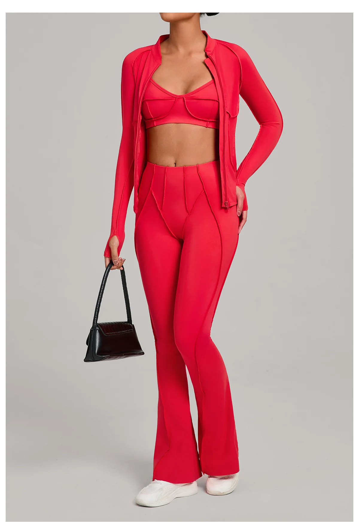 3 Pieces Sports Suit for Fitness Women Sportswear Long Sleeve Gym Clothes Woman Outfit Workout Set Winter Tracksuit Coffee Blue
