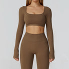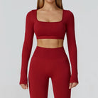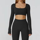 Seamless Casual Quick Dry Sportswear Women Square Neck Gym Top Women Fitness Sports Crop Top Female Long Sleeve Yoga Clothing