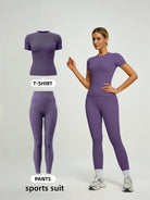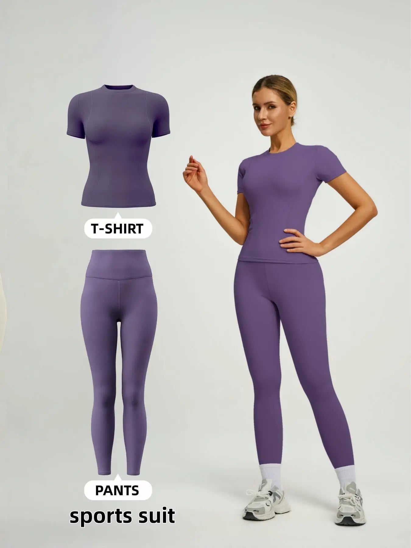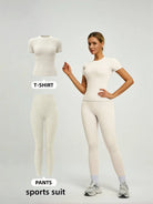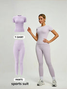 Women's Short Sleeve Sporty Set, High Waist Yoga Pants & T-Shirt Combo, Ideal for Fitness Gym Sculpting Workout