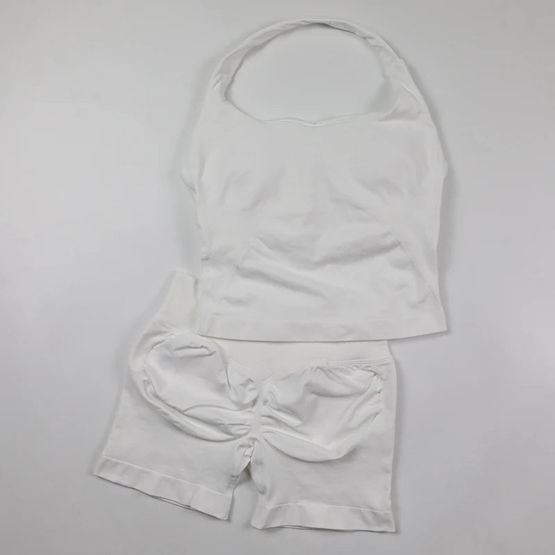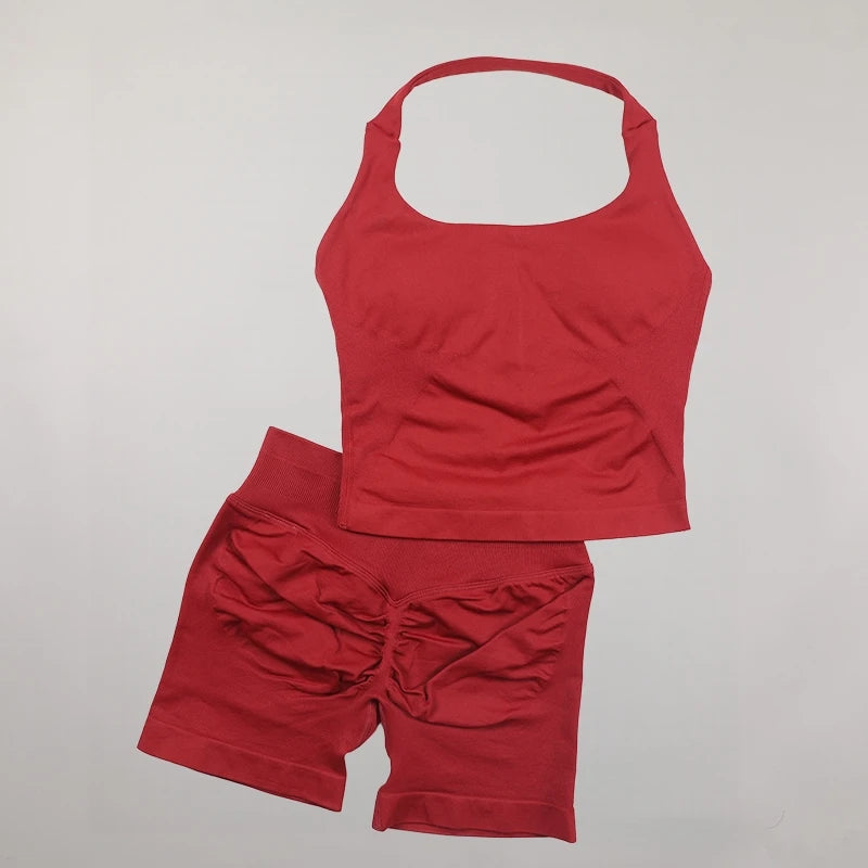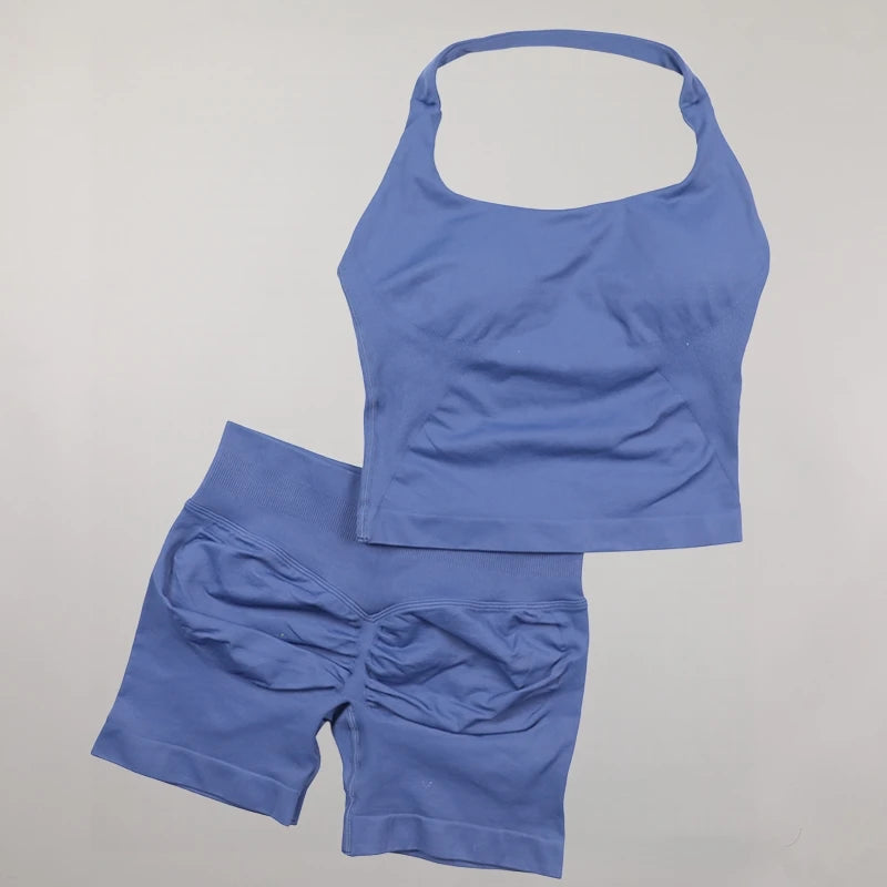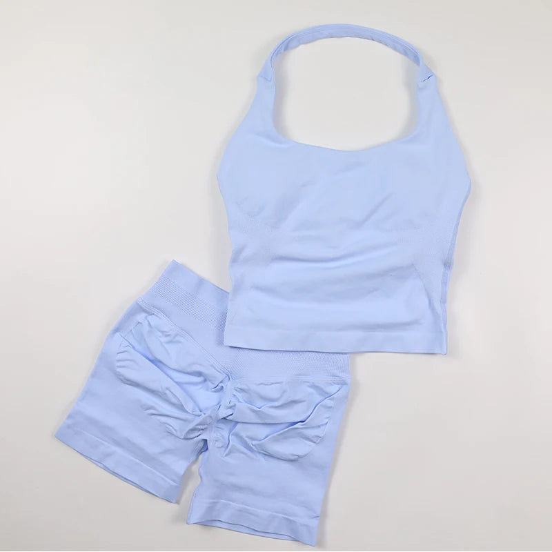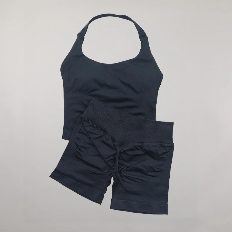 Yoga Halter Top Impact leggins Set Women's Beautiful Back Sports Bra Hip-Lifting High-Stretch Shorts Set Indoor Outdoor Gym Set
